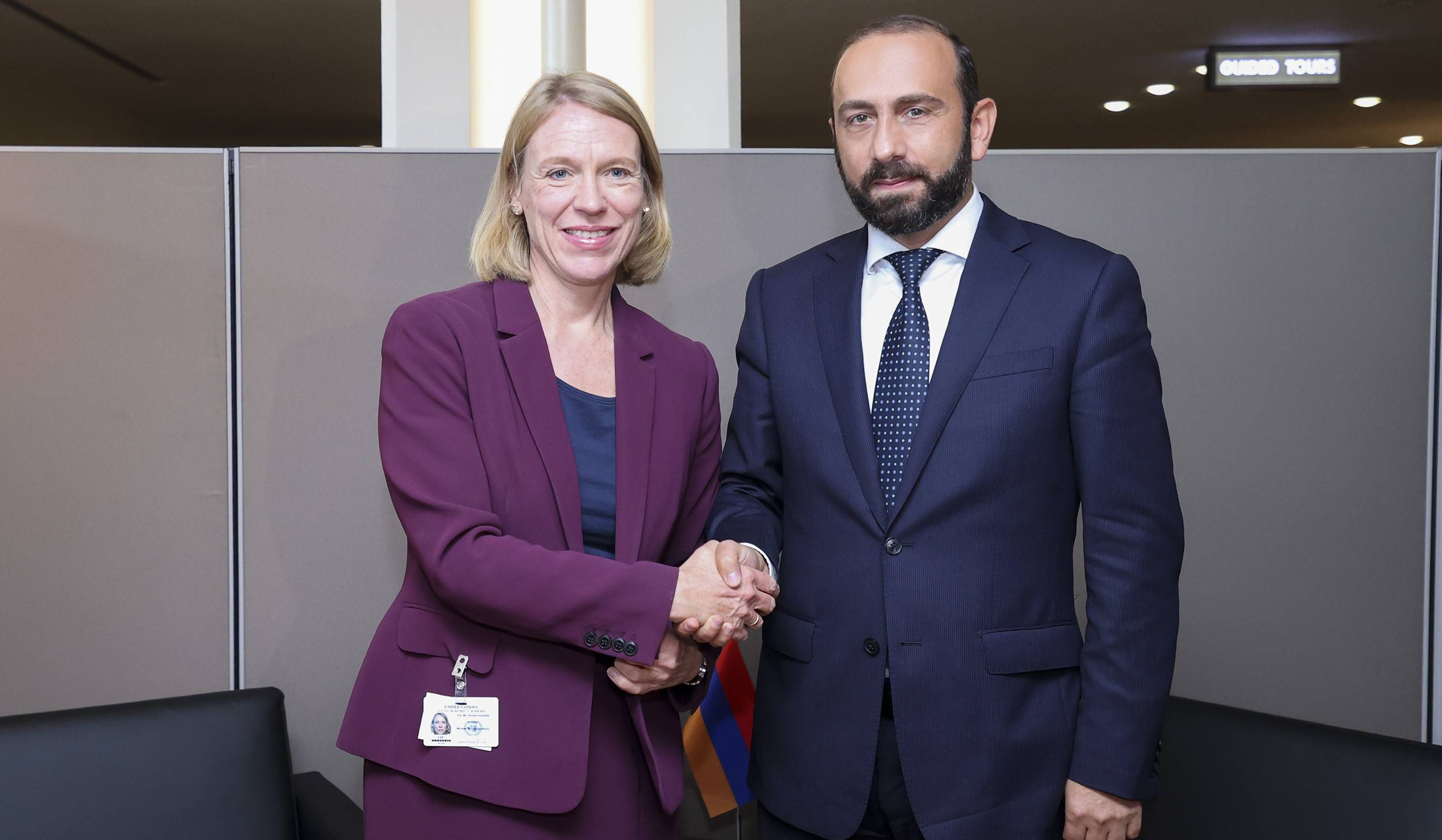 Սեպտեմբերի 18-ին Նյու Յորքում ՄԱԿ-ի Գլխավոր ասամբլեայի 78-րդ նստաշրջանի շրջանակներում ՀՀ արտաքին գործերի նախարար Արարատ Միրզոյանը հանդիպում է ունեցել Նորվեգիայի Թագավորության ԱԳ նախարար Աննիկեն Հյուիթֆիլդի հետ: Այս մասին տեղեկացնում են ՀՀ ԱԳՆ-ից։