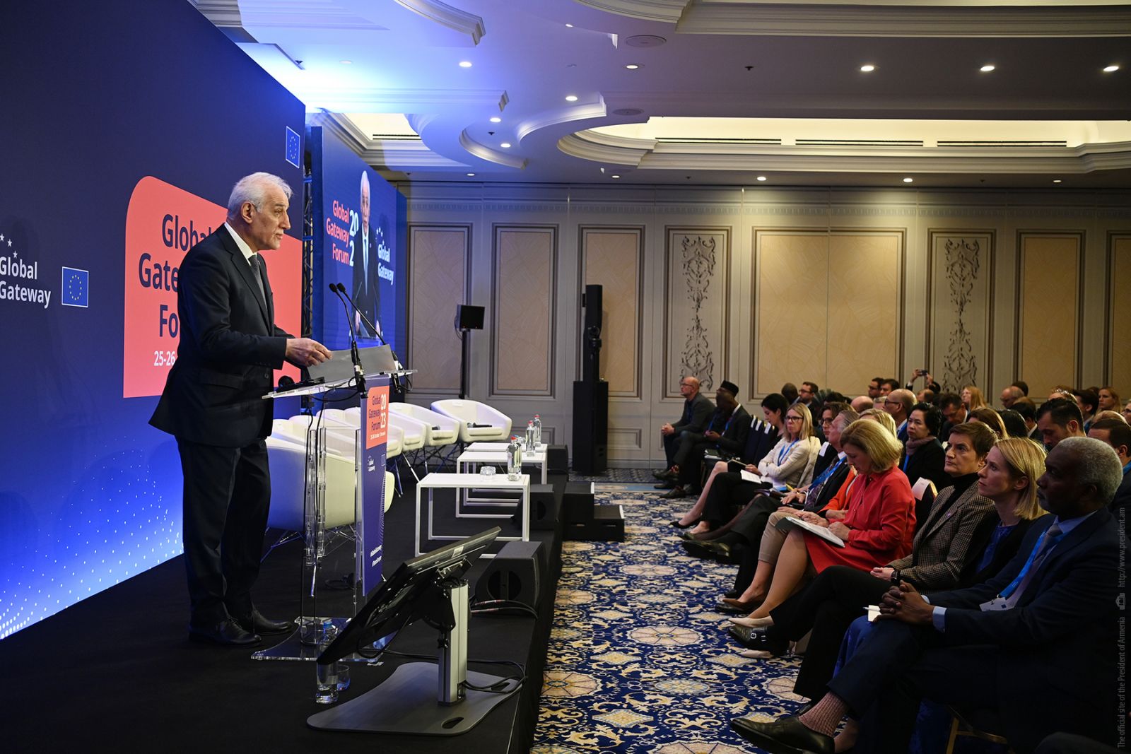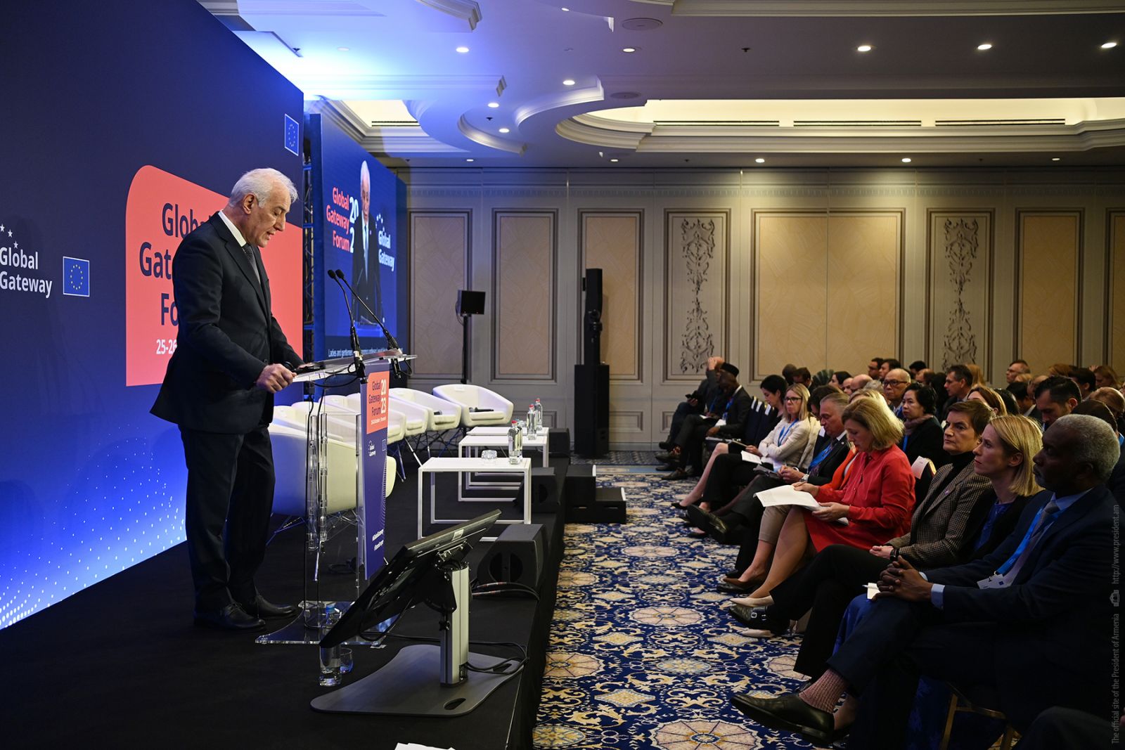 «Նախ և առաջ, ես կցանկանայի շնորհակալություն հայտնել նախագահ ֆոն դեր Լայենին այս կարևոր նախաձեռնության համար՝ անդրանիկ «Գլոբալ դարպասներ» համաժողովի անցկացման և մեծ թվով բարձրաստիճան մասնակիցների մեկ հարկի տակ հավաքելու համար՝ կարևոր խնդիրների շուրջ կարծիքներ փոխանակելու նպատակով: