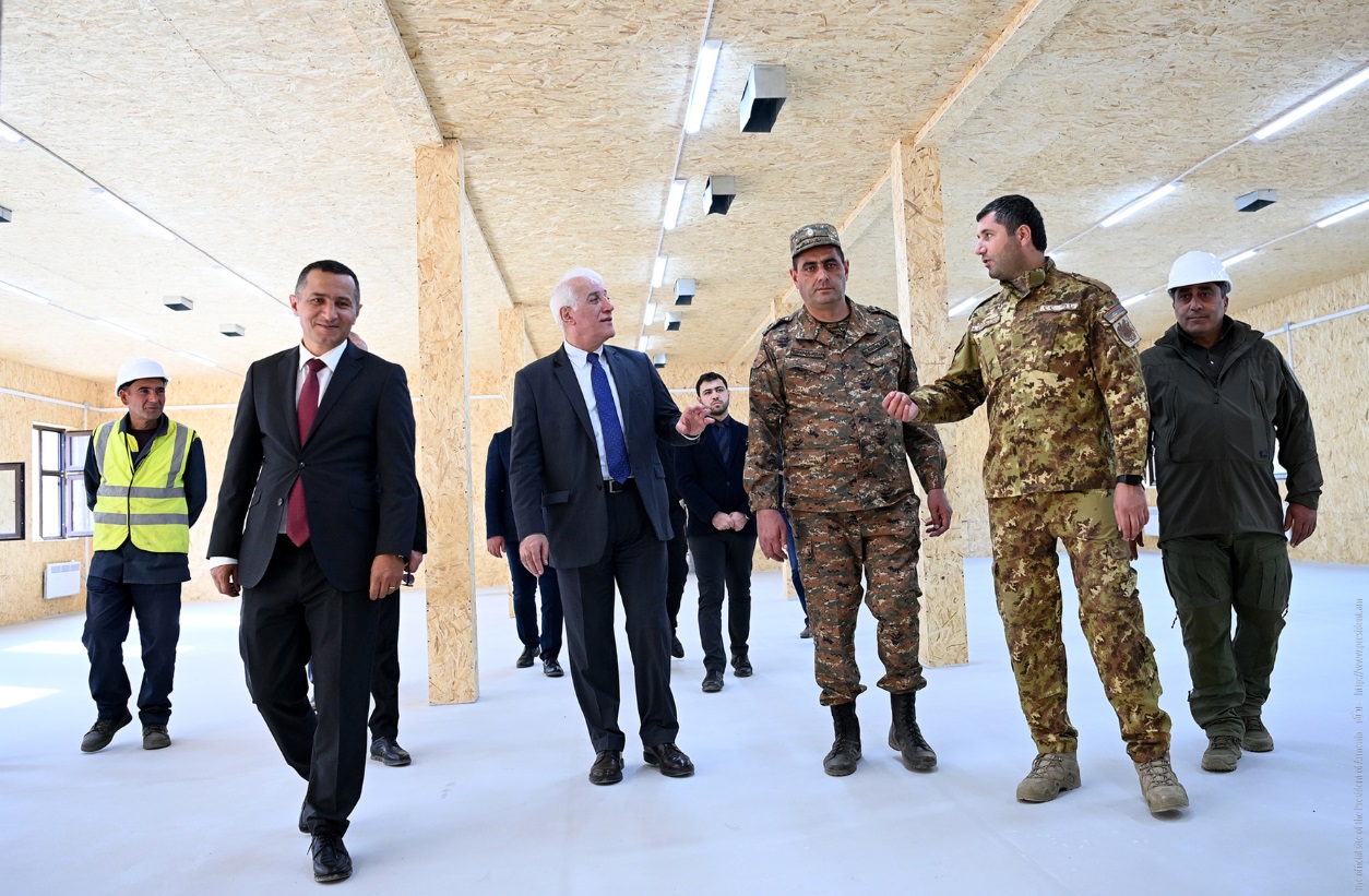 Նախագահը ծանոթացել է ընթացող աշխատանքներին և զրուցել շինարարների, ինչպես նաև զինվորական ղեկավարության հետ, հետաքրքրվել նոր տիպի զորամասերի կառուցման ընթացքից։