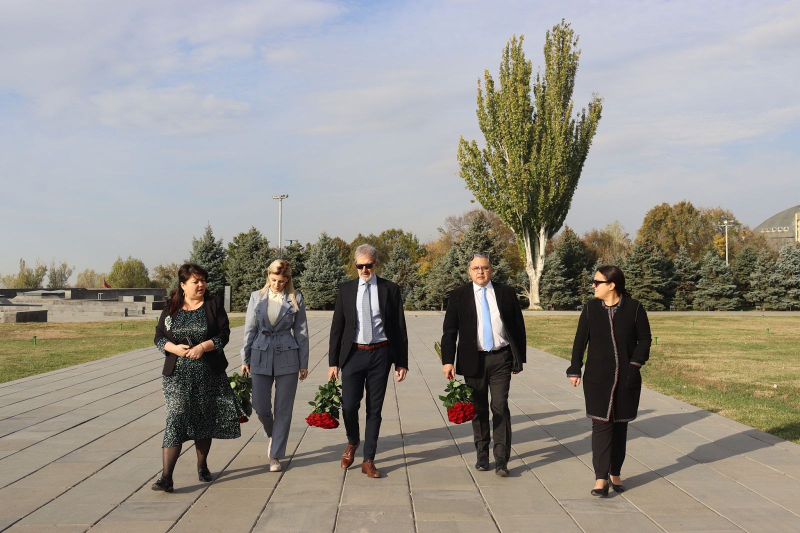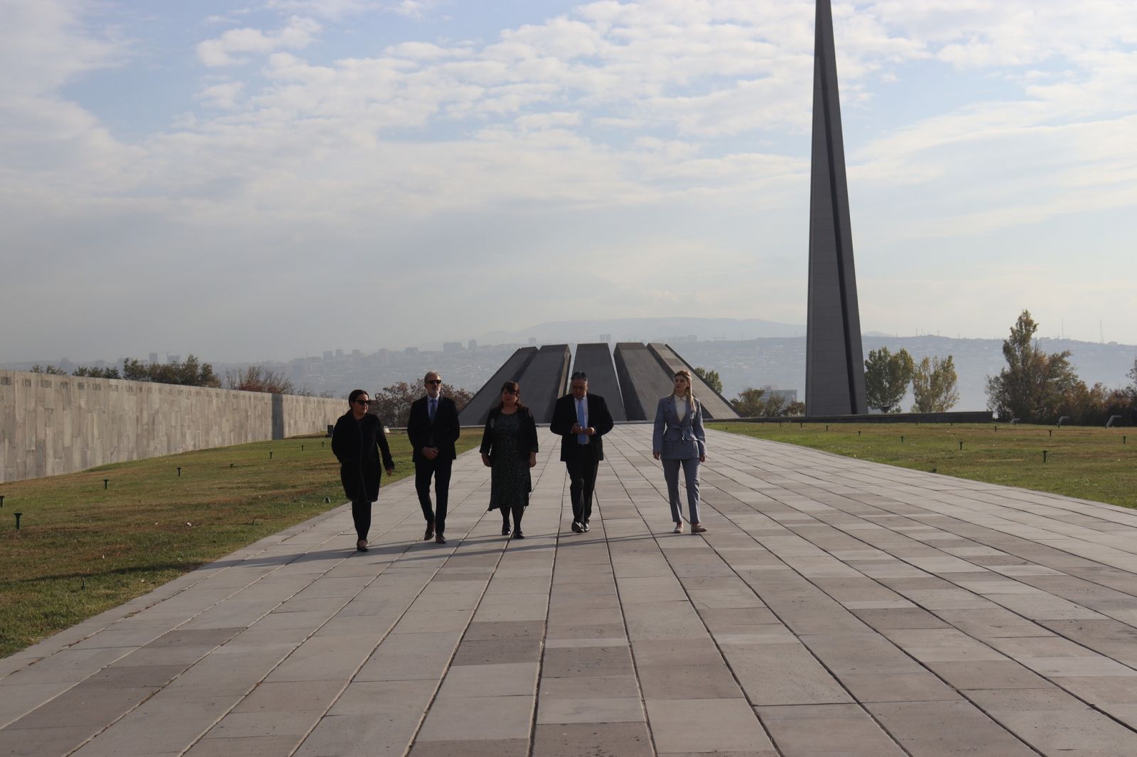 Հյուրերը ծաղիկներ դրեցին անմար կրակի մոտ և մեկ րոպե լռությամբ հարգեցին Հայոց ցեղասպանության անմեղ զոհերի հիշատակը: Էդիտա Գզոյանը նրանց ուղեկցեց հուշապատի մոտ, որի հետնամասում հատուկ խորշերի մեջ ամփոփված են 19-րդ դարավերջին և 20-րդ դարասկզբին թուրքական կառավարության իրագործած հայերի զանգվածային կոտորածների և ցեղասպանության դեմ իրենց բողոքի ձայնը բարձրացրած օտարազգի մի շարք հասարակական, քաղաքական գործիչների, մտավորականների և միսիոներների գերեզմաններից վերցված հողով լի փոքր սափորները: