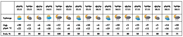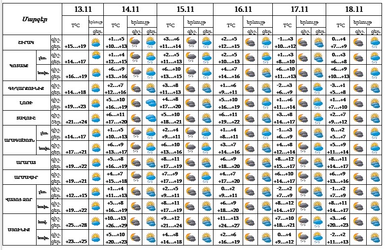 Օդի ջերմաստիճանը նոյեմբերի 14-ին կնվազի 3-6 աստիճանով։