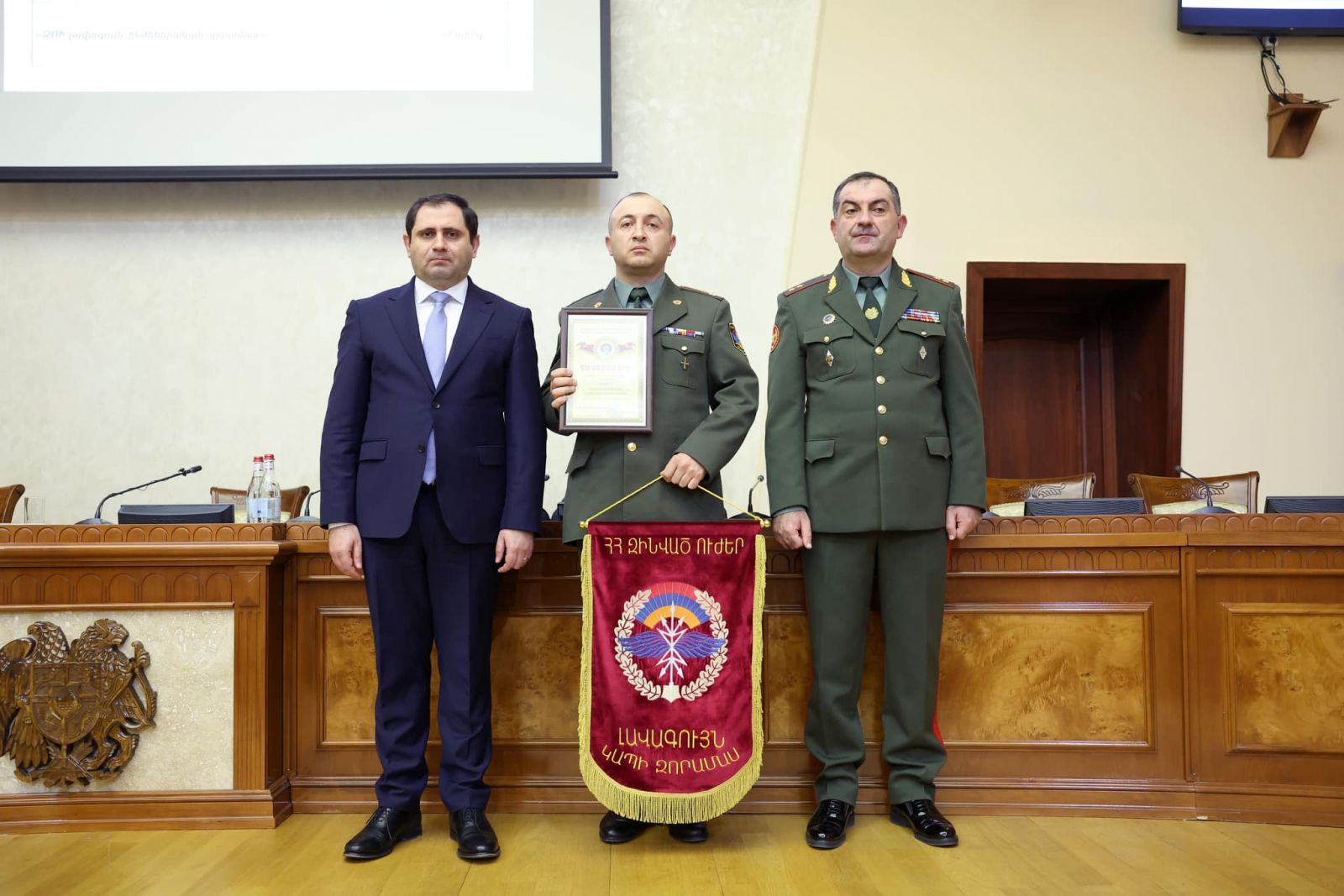 արդյունքներով լավագույն ցուցանիշներ արձանագրած զորամասերի հրամանատարներին հանձնվել են փոխանցիկ դրոշները, իսկ բարեխիղճ ծառայությամբ աչքի ընկած մի շարք զինծառայողներ պարգևատրվել են գերատեսչական մեդալներով, պատվոգրերով և արժեքավոր նվերներով»,- Ֆեյսբուքի իր էջում գրել է ՀՀ ՊՆ ղեկավար Սուրեն Պապիկյանը։