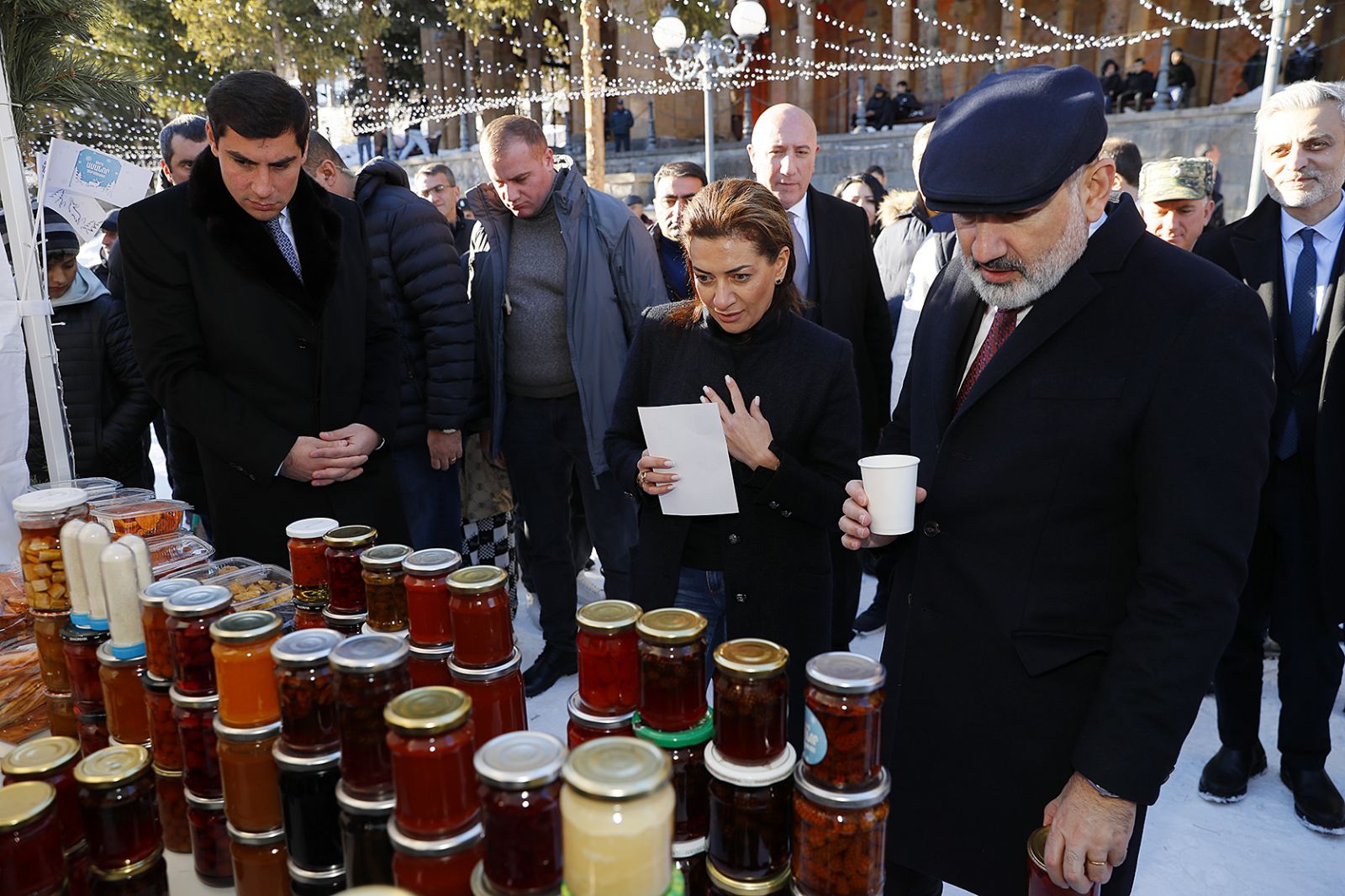 Տաղավարներով շրջայցի ընթացքում վարչապետը տիկնոջ հետ ծանոթացել է ներկայացված արտադրատեսակներին, կատարել գնումներ: Միջոցառմանը ներկա քաղաքացիներին Նիկոլ Փաշինյանը շնորհավորել է Ամանորի և Սուրբ Ծննդյան տոների առիթով և հղել մաղթանքներ: