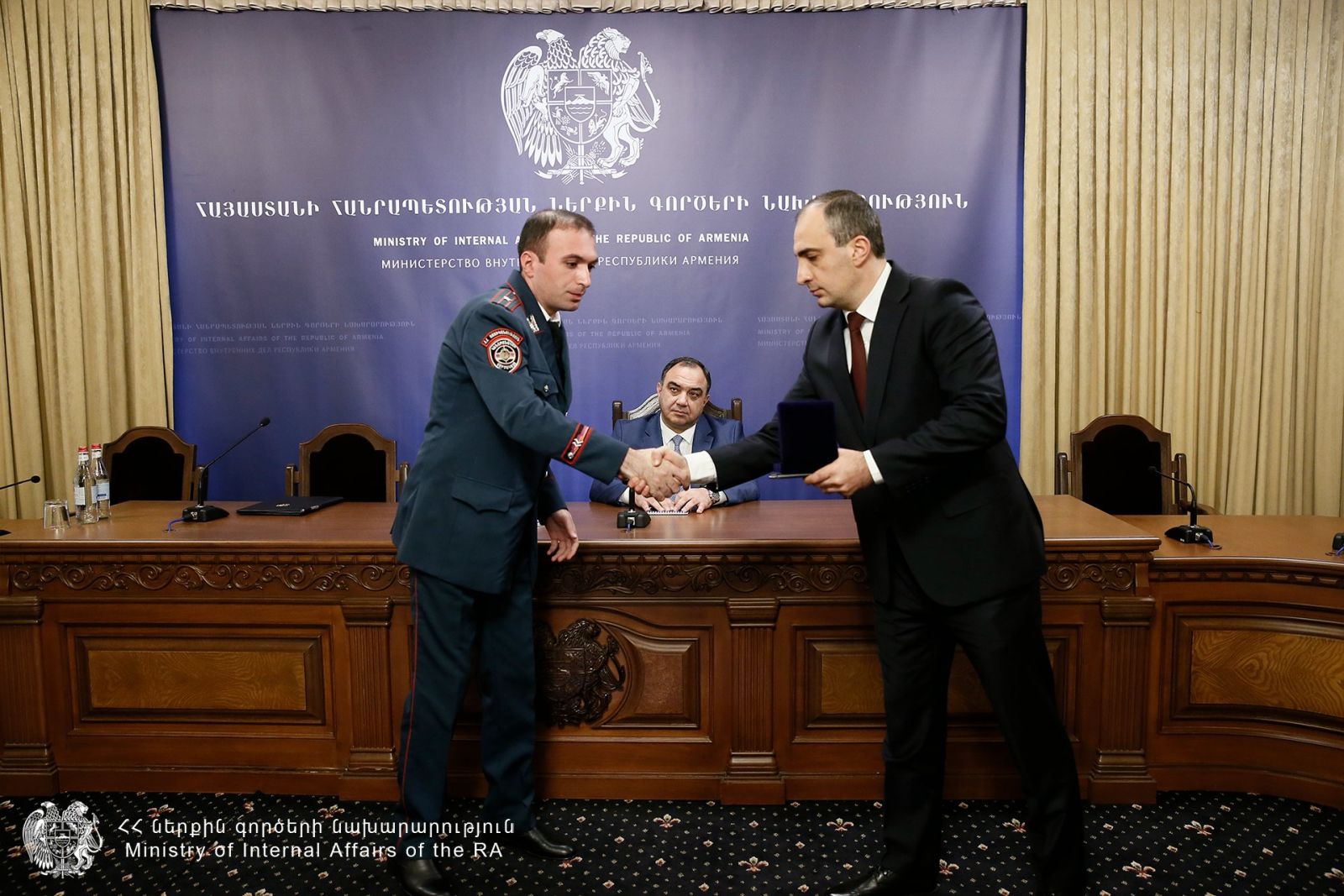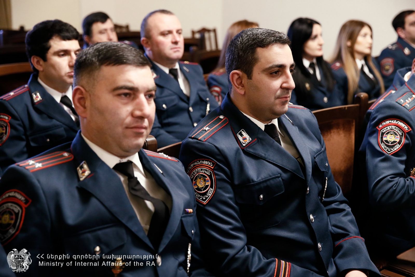 Հանդիպման ավարտին բարեխիղճ ծառայությամբ աչքի ընկած մի խումբ ծառայողների ՆԳ նախարարը պարգևատրել է գերատեսչական մեդալներով։