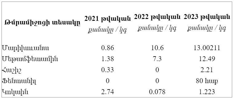 Առավել շրջանառվող թմրամիջոցների բացահայտումներն ըստ տարիների.