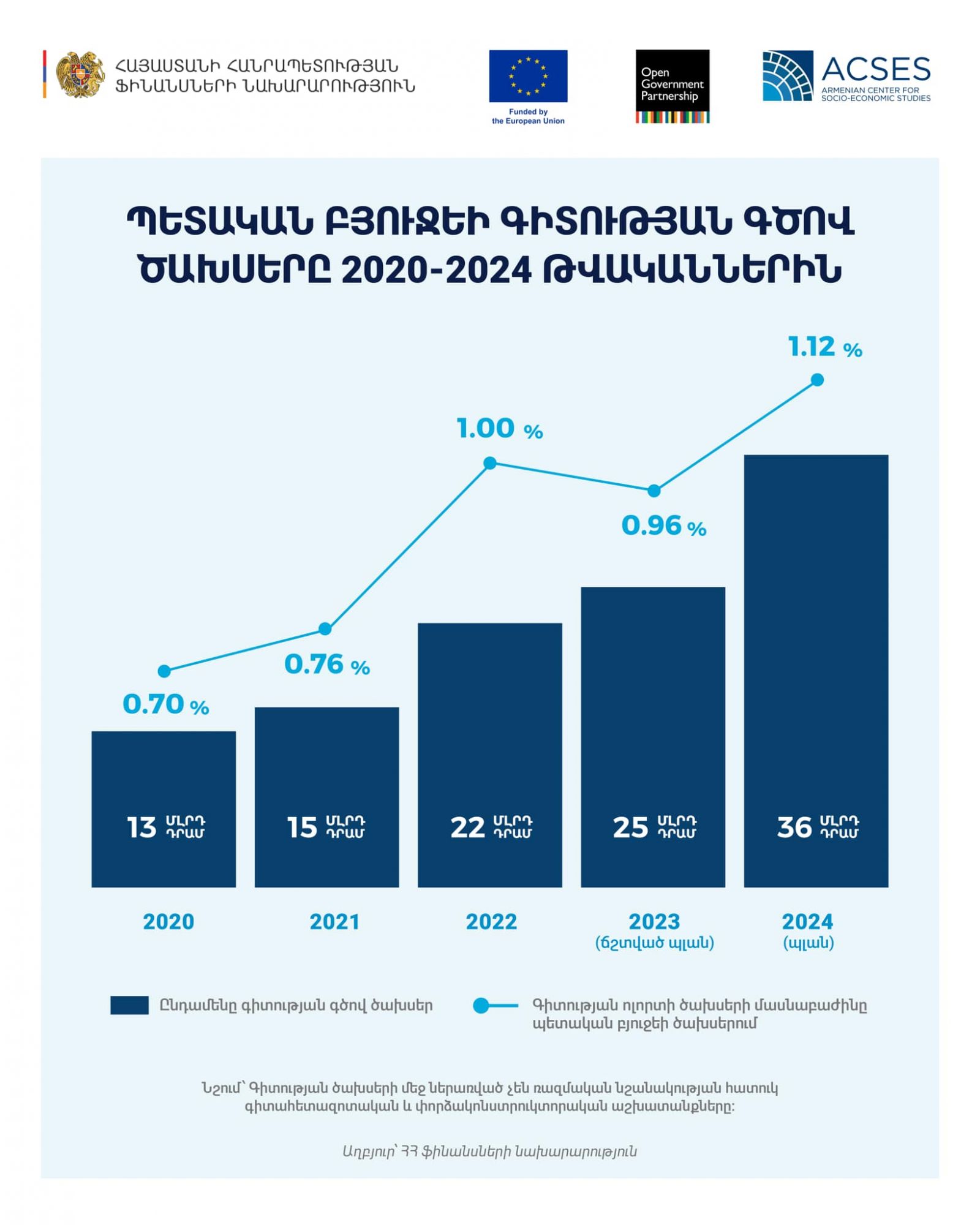 ՀՀ ֆինանսների նախարարությունից հայտնում են, թե ինչքանով է աճել պետական բյուջեի գիտության գծով ծախսերը 2020-2024 թվականներին: