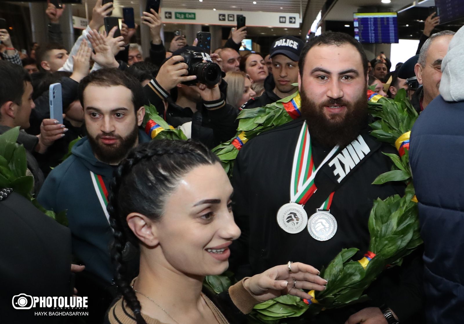 Հայաստանի ծանրամարտի տղամարդկանց և կանանց հավաքականներն այս գիշեր վերադարձել են Բուլղարիայից: ԿԳՄՍՆ-ից տեղեկացնում են, որ Եվրոպայի առաջնությունից մեդալներով վերադարձած ծանրորդներին «Զվարթնոց» օդանավակայանում դիմավորել են ԿԳՄՍ նախարարի տեղակալ Կարեն Գիլոյանը, ՀԱՕԿ գլխավոր քարտուղար Հրաչյա Ռոստոմյանը, մարզաշխարհի այլ ներկայացուցիչներ, մարզասերներ:
