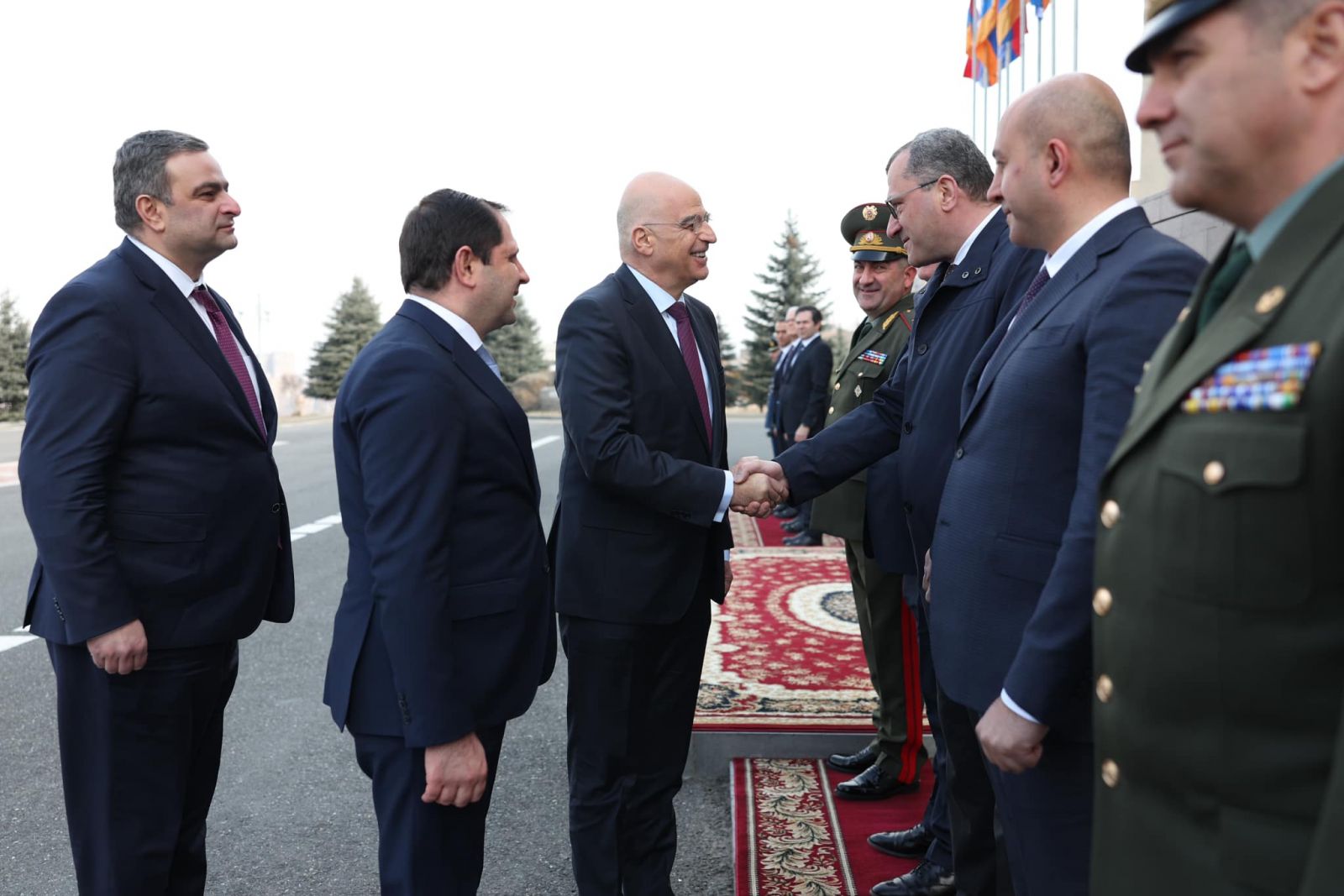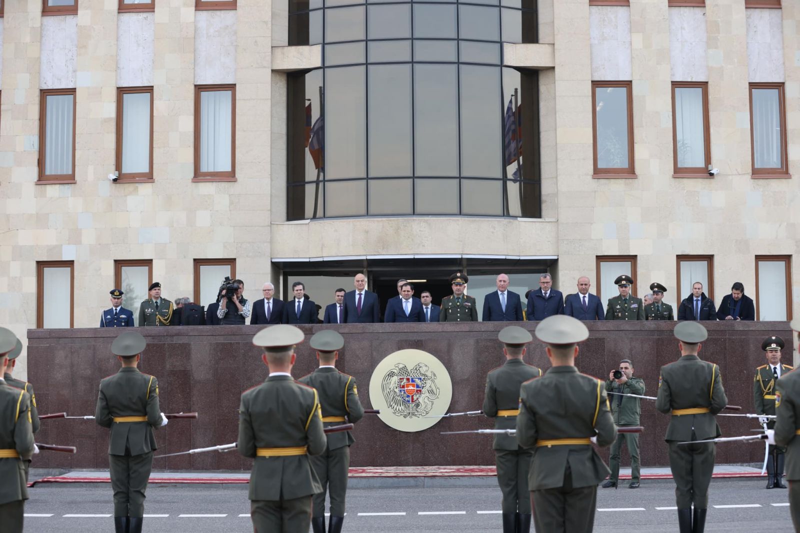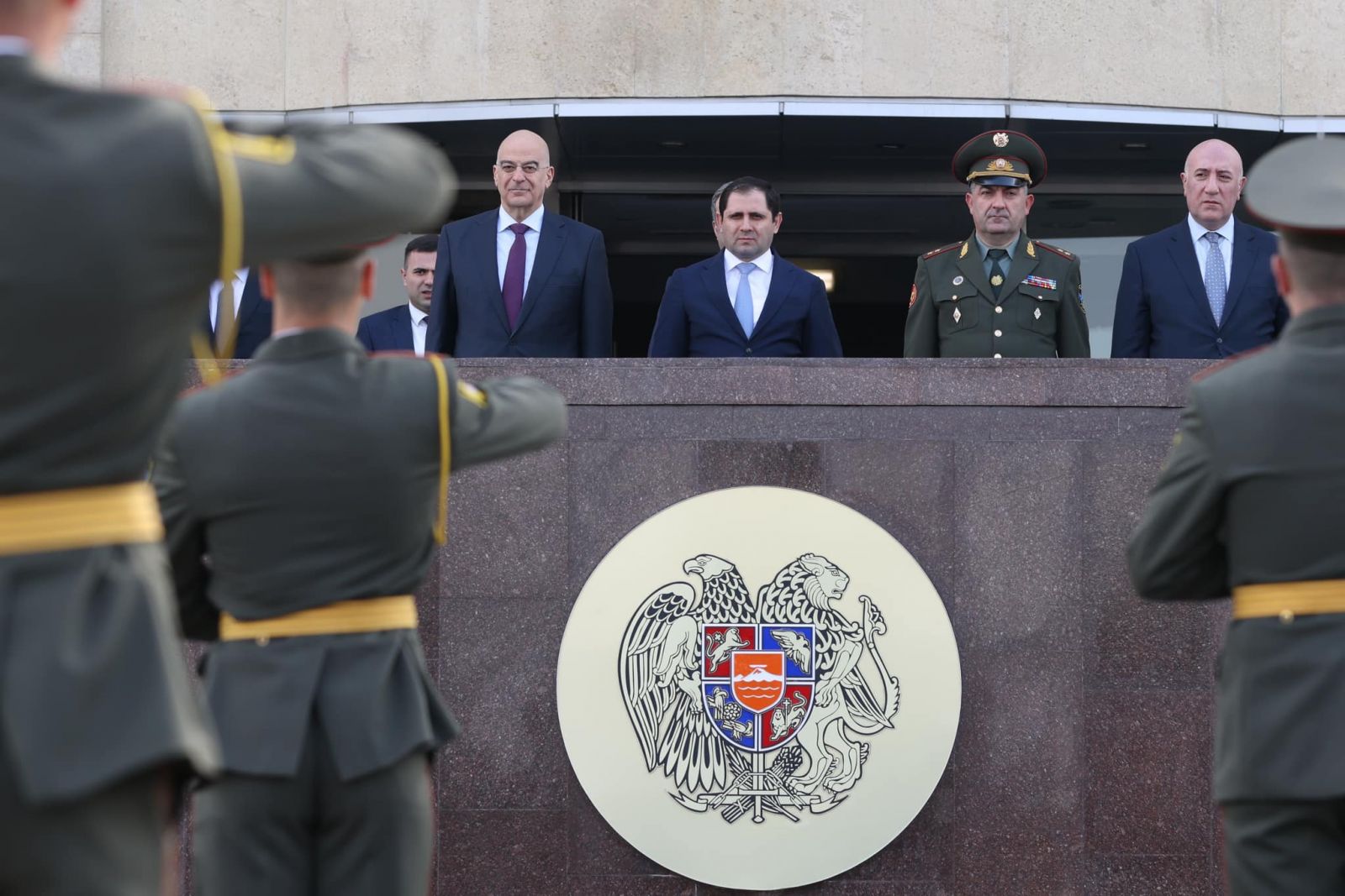 ՊՆ վարչական համալիրում տեղի է ունեցել Նիկոլաոս Դենդիասի դիմավորման հանդիսավոր արարողությունը՝ պատվո պահակախմբի և զինվորական նվագախմբի մասնակցությամբ։ Հնչել են Հայաստանի և Հունաստանի պետական օրհներգերը։