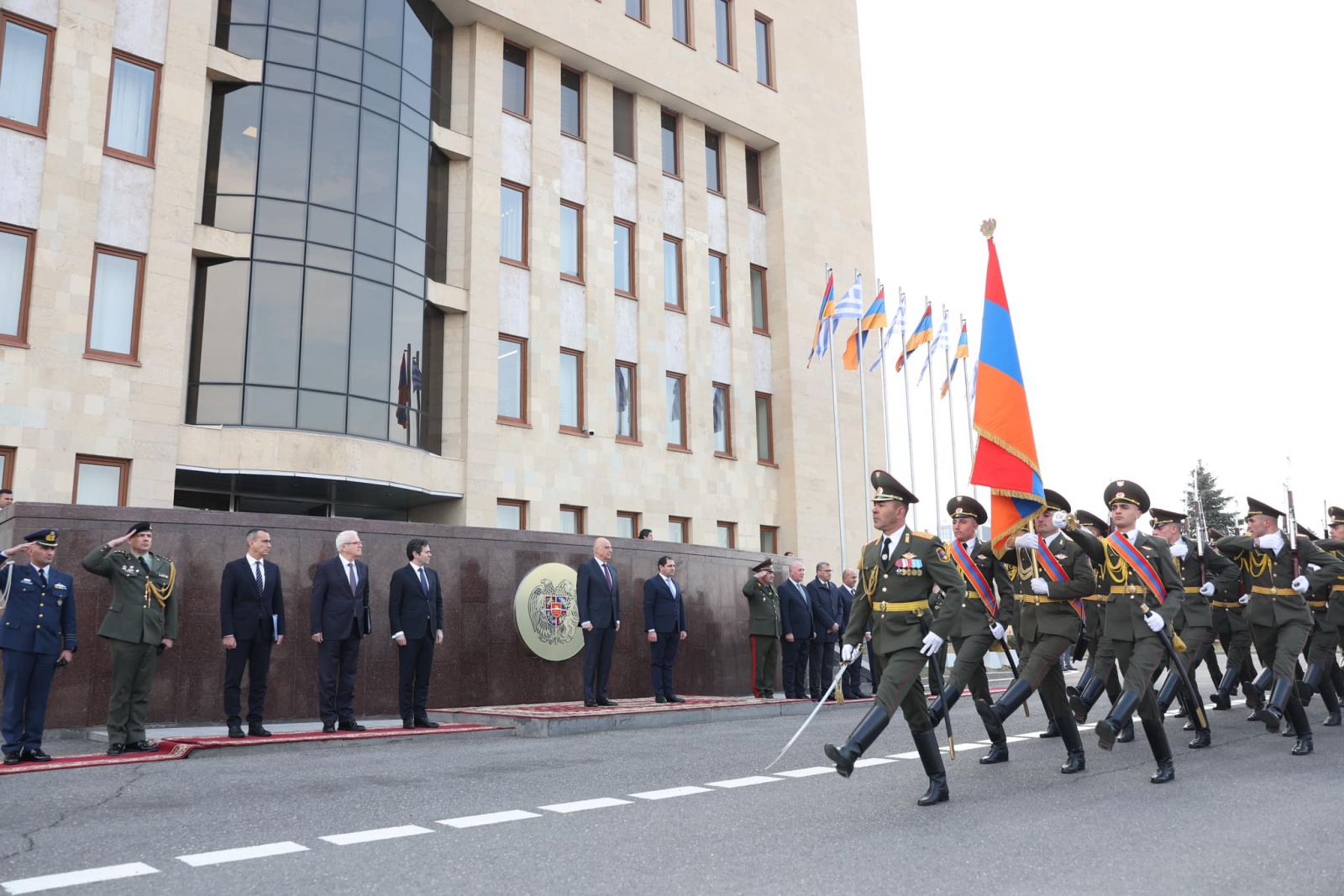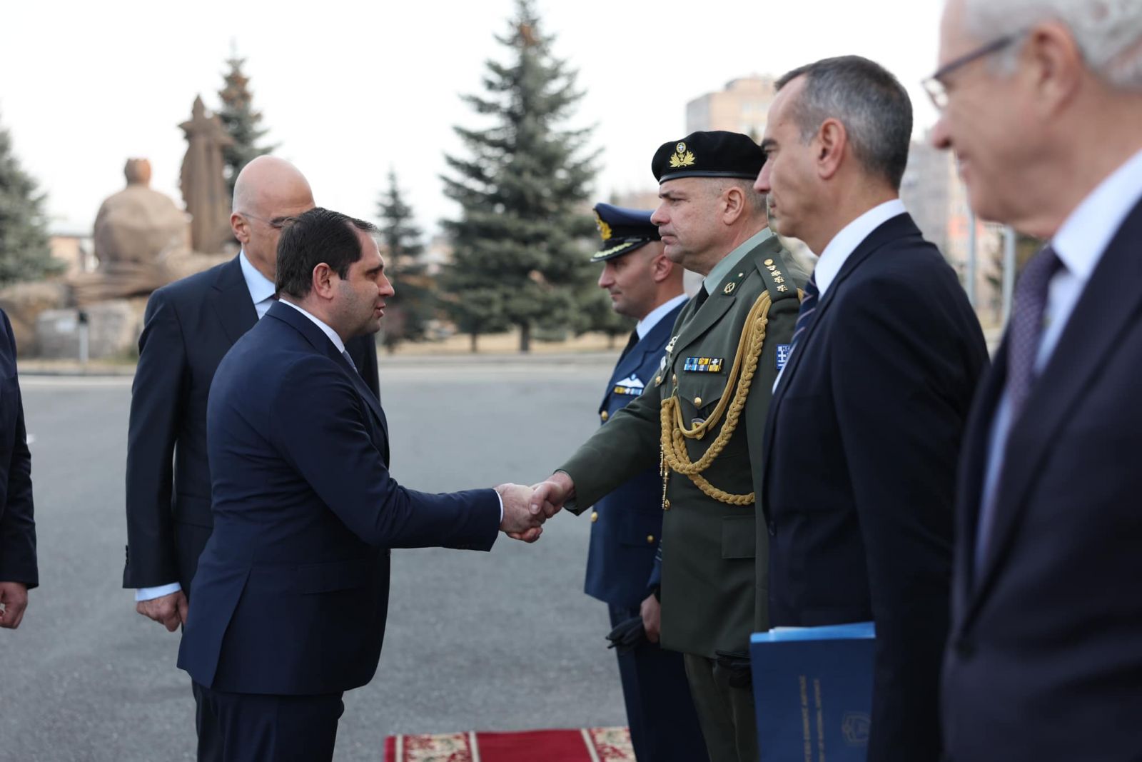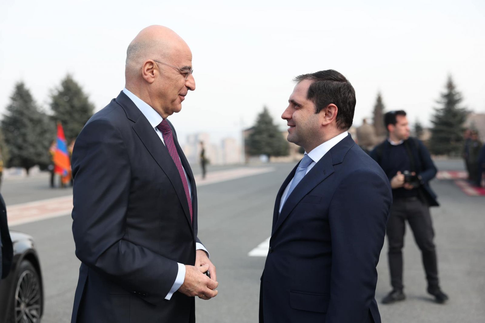 ՊՆ վարչական համալիրում տեղի է ունեցել Նիկոլաոս Դենդիասի դիմավորման հանդիսավոր արարողությունը՝ պատվո պահակախմբի և զինվորական նվագախմբի մասնակցությամբ։ Հնչել են Հայաստանի և Հունաստանի պետական օրհներգերը։