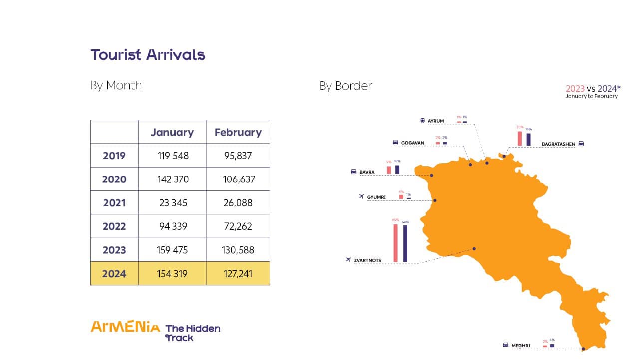ՀՀ զբոսաշրջության կոմիտեն հրապարակել է ընթացիկ տարվա փետրվար ամսին դեպի Հայաստան զբոսաշրջային այցելությունների վերաբերյալ վիճակագրական տվյալներ: