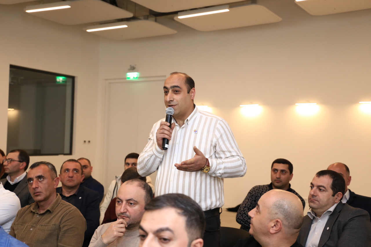 Հանդիպման ընթացքում Գևորգ Պապոյանն ու Արամ Ղազարյանը պատասխանել են գործարարներին հուզող հարցերին, պարզաբանումներ տվել բարձրացված հարցերի շուրջ։
