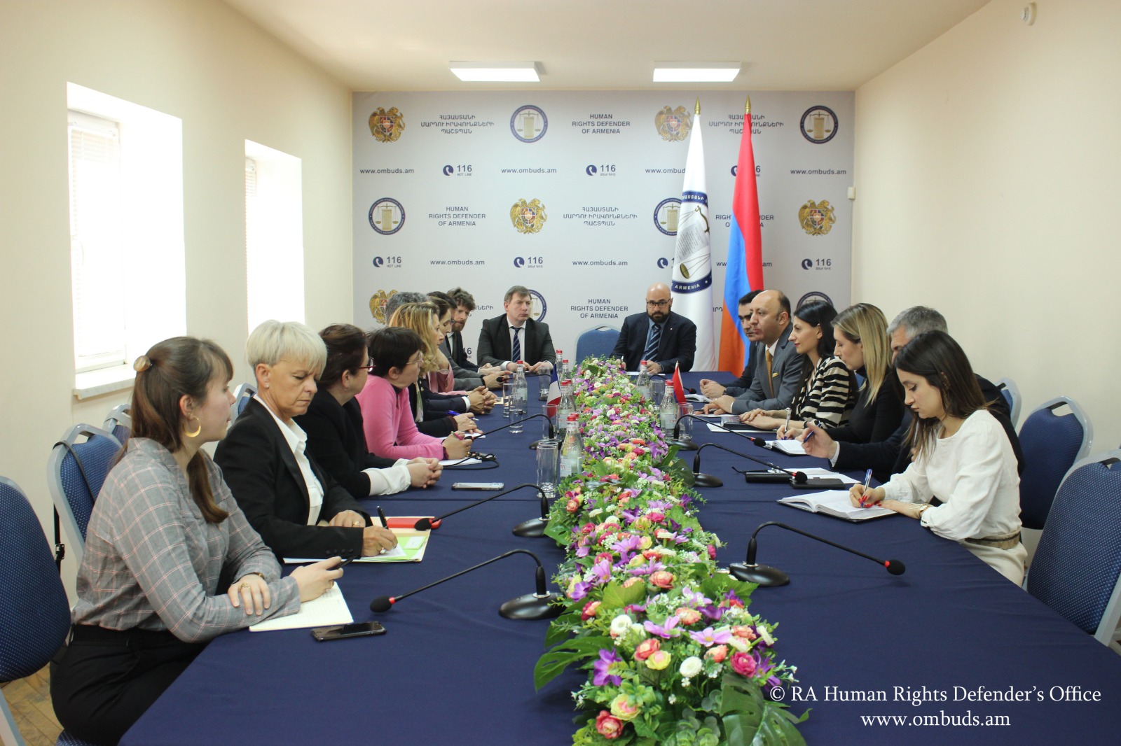 Ողջունելով հյուրերին՝ Պաշտպանը բարձր է գնահատել մարդու իրավունքների պաշտպանության ոլորտում ֆրանսիացի գործընկերների հետ համագործակցությունը` նկատի ունենալով նաև այն ժողովրդավարական ու իրավունքահենք արժեքները, որոնցով առաջնորդվում է Ֆրանսիան։