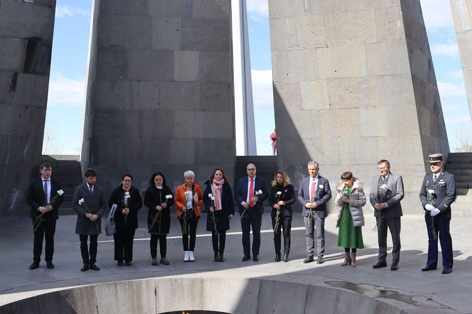 Ֆրանսիայից ժամանած պատվիրակության անդամները ծաղիկներ դրեցին անմար կրակի մոտ և մեկ րոպե լռությամբ հարգեցին Հայոց ցեղասպանության անմեղ զոհերի հիշատակը: