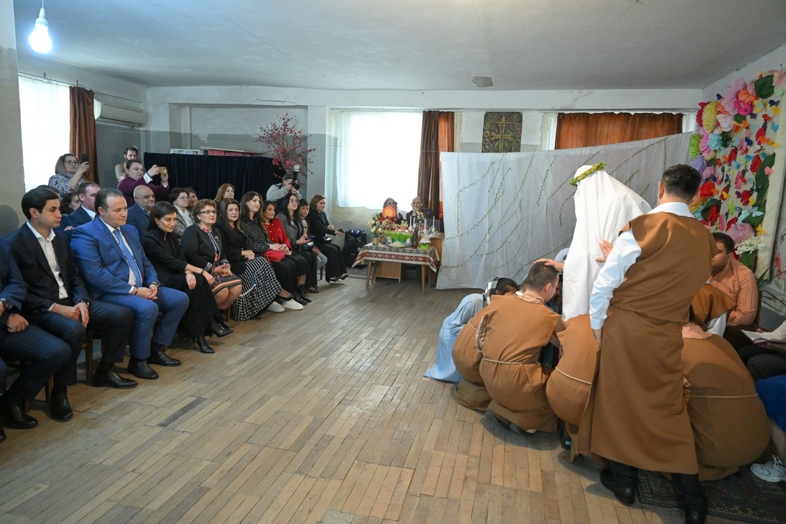 Ներկայացման թեման Սուրբ Հարության` Զատկի տոնն էր: Կենտրոնի սաները բեմադրել էին Աստվածաշնչից մի հատված, որի ընթացքում պատմում էին Հիսուս Քրիստոսի Հարության մասին: Ներկայացումից հետո սաները հանդես են եկել նաև պարային համարներով: Շահառուներից Ալիկը, որը 43 տարեկան է, Աննա Հակոբյանին է նվիրել իր գեղանկարներից մեկը:
