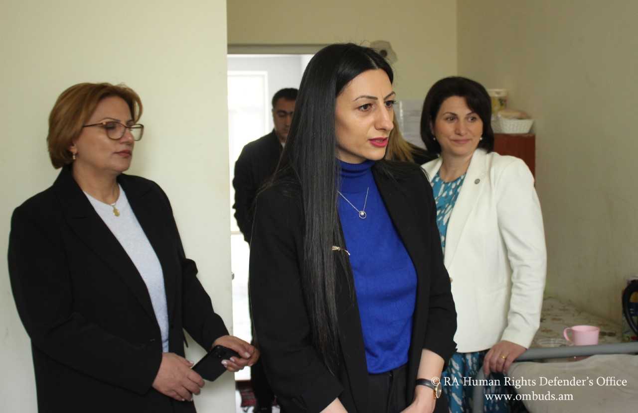 Պաշտպանը հատուկ ուշադրություն է դարձրել իրենց մոտ մինչև 3 տարեկան երեխա ունեցող ազատությունից զրկված կանանց պահման պայմաններին, զրուցել նրանց հետ, քննարկել երեխաների խնամքի հետ կապված հարցեր։