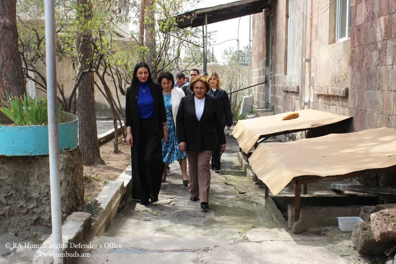 Այնուհետև Անահիտ Մանասյանն ու ՄԻՊ ներկայացուցիչներն ուսումնասիրել են քրեակատարողական հիմնարկում պահվող կին և անչափահաս ազատությունից զրկված անձանց պահման պայմանները, հիմնարկի պետ Հեղինե Մարտիրոսյանի ուղեկցությամբ շրջել տարածքով, զրուցել ինչպես ազատությունից զրկված անձանց, այնպես էլ հիմնարկի կին աշխատակիցների հետ, լսել մարդու իրավունքներին վերաբերելի հարցերը, հավաքագրել խնդիրները։