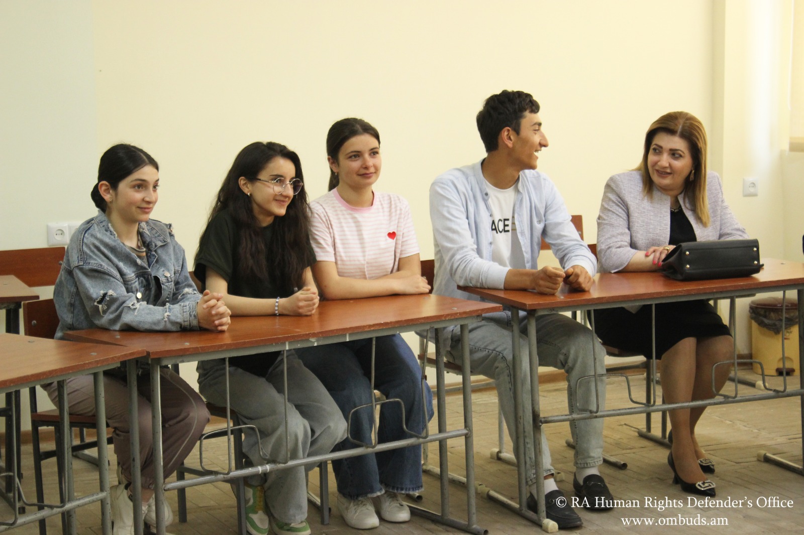 Դպրոցականների հետ հանդիպումն ու զրույցն անցկացվել են Պաշտպանի նախաձեռնությամբ՝ «Դասավանդի՛ր, Հայաստան» կրթական հիմնադրամի «Սերունդ» ծրագրի շրջանակներում: Ներկա են եղել հաստատության սաները, ուսուցչական կազմը, մարզպետարանի և ՄԻՊ ներկայացուցիչները: