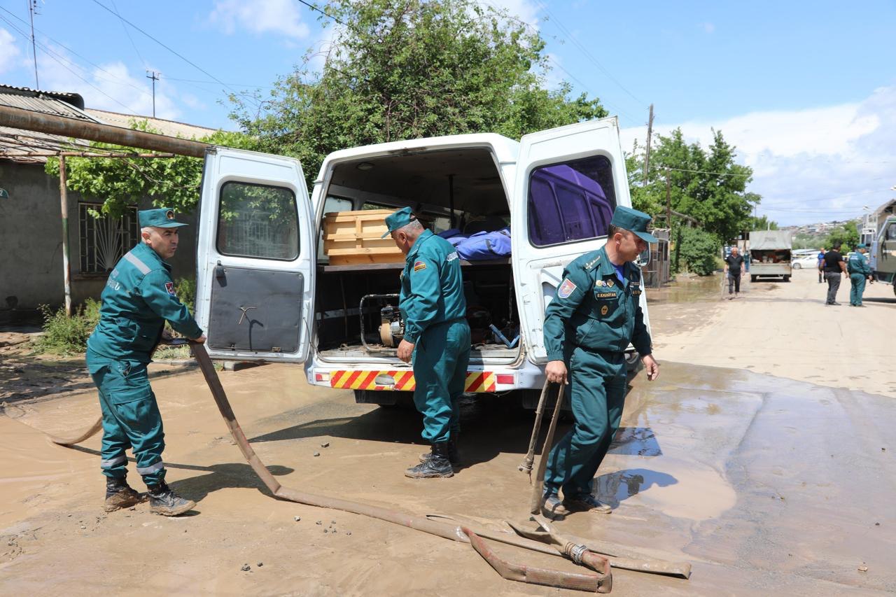 Փրկարարները ձեռքով և քաղաքապետարանի տրամադրած հատուկ տեխնիկայի (տրակտոր) օգնությամբ իրականացնում են գետի հունի մաքրման, երկաթբետոնե կառուցատարրերի տեղափոխման, մոտոպոմպով՝ ջրալցված տներից ջրահեռացման աշխատանքներ, ավազով լցված պարկերով փակել են պատնեշի վնասված հատվածները։