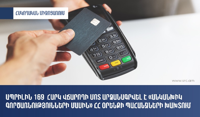 2024 թվականի ապրիլ ամսվա ընթացքում ավարտված հսկողական աշխատանքների արդյունքներով 169 հարկ վճարողի մոտ արձանագրվել է «Անկանխիկ գործառնությունների մասին» ՀՀ օրենքի պահանջների խախտում: