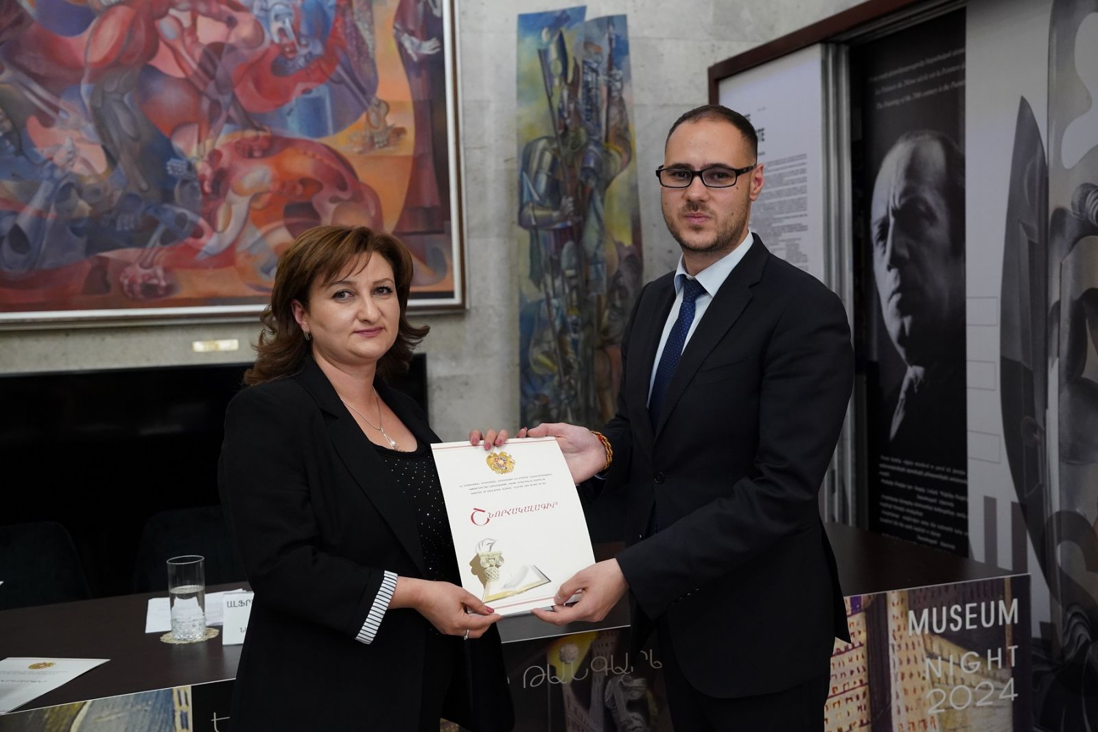 ՀՀ ԿԳՄՍ նախարարի տեղակալ Ալֆրեդ Քոչարյանը ողջունել է ներկաներին և նշել, որ այս տարի «Թանգարանների գիշեր» համաեվրոպական միջոցառումը կրում է «Թանգարաններ, կրթություն և հետազոտություն» խորագիրը, որն ամբողջովին համահունչ է նախարարության տեսլականին: Նրա խոսքով՝ թանգարանները պետք է բեռնաթափվեն վարչական աշխատանքներից և առավելագույնս ուշադրության կենտրոնում պահեն կրթական ծրագրերը: Նախարարի տեղակալի նշմամբ՝ 2024 թվականին «Թանգարանների գիշեր» համաեվրոպական միջոցառմանը միացել են հայաստանյան 118 թանգարաններ, որոնք բոլոր այցելուների համար անվճար սկզբունքով բաց կլինեն մայիսի 18-ին՝ ժամը 11:00-ից 24:00-ն: