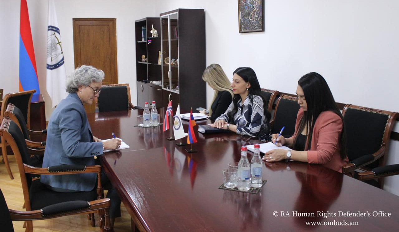 Ողջունելով հյուրին՝ Անահիտ Մանասյանը դեսպանին է ներկայացրել մարդու իրավունքների պաշտպանի լիազորությունների շրջանակը՝ որպես սահմանադրական մարմին, աշխատանքային առաջնահերթությունները, գործունեության ուղղությունները, որոնք ի թիվս այլնի ներառում են՝ կանանց, երեխաների, ազգային փոքրամասնությունների, հաշմանդամություն ունեցող անձանց իրավունքների, զինված ուժերում, քրեական վարույթի շրջանակներում մարդու իրավունքների, քաղաքացիական, սոցիալ֊տնտեսական իրավունքների, ատելության խոսքի, անհանդուրժողականության մթնոլորտի, խտրականության դեմ պայքարի և այլ ոլորտները։