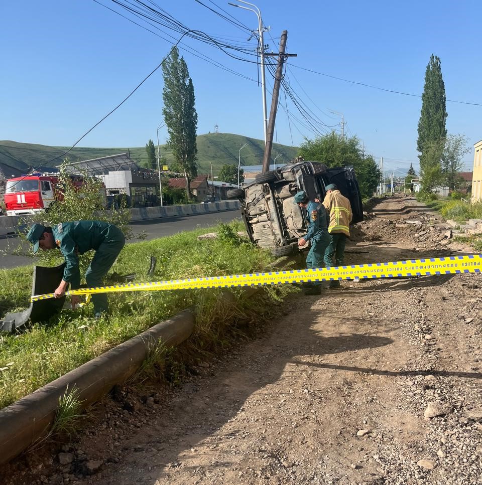 Պարզվել է, որ Վանատուր թաղամասում «Lada» մակնիշի ավտոմեքենան (վարորդ՝ Ա. Մ., ծնված 2000 թ.) դուրս է եկել ճանապարհի երթևեկելի հատվածից, բախվել սյանը՝ վնասելով հեռախոսակապի մալուխներ և կողաշրջվել. առկա է վառելիքի արտահոսք:
