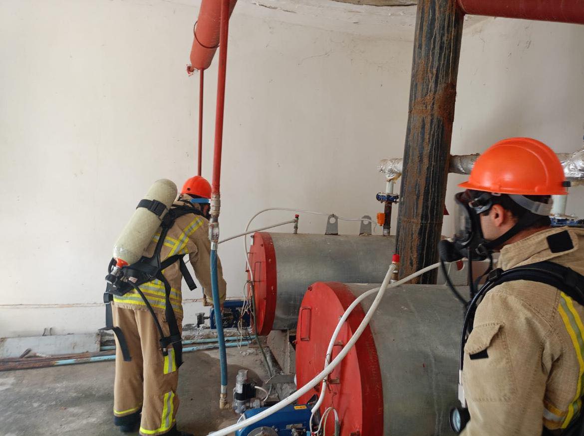 Ուսումնավարժության ընթացքում շնչառական ապարատների կիրառմամբ իրականացվել են հետախուզություն, վթարավերականգնողական և պայմանական հրդեհաշիջման աշխատանքներ և գազատարի վնասված հատվածի վերանորոգման աշխատանքներ: