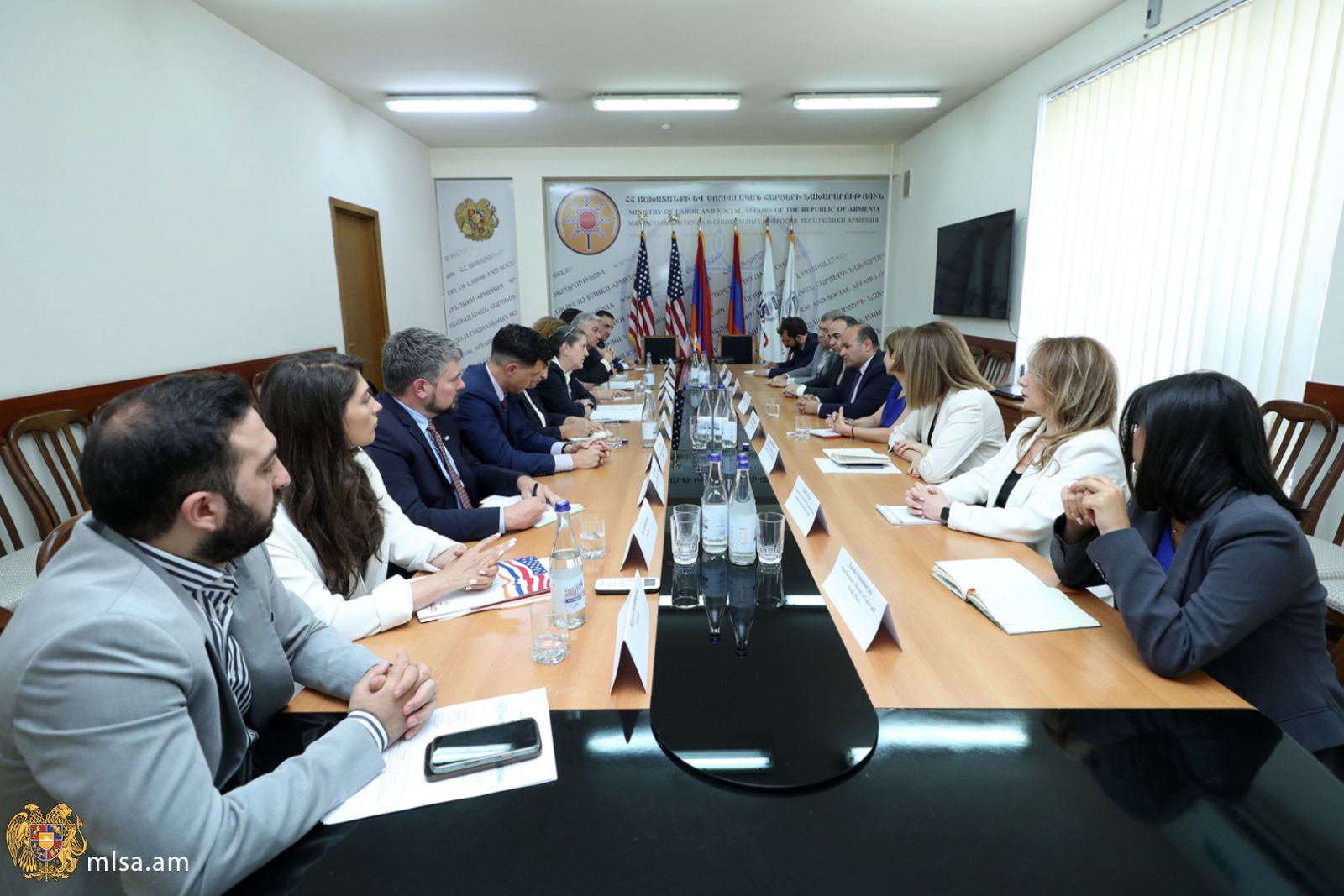 Հանդիպման ընթացքում քննարկվել են աշխատանքի և սոցիալական պաշտպանության ոլորտում ԱՄՆ ՄԶԳ-ի հետ ունեցած համագործակցության ուղղությունների ընդլայնմանն առնչվող մի շարք հարցեր։