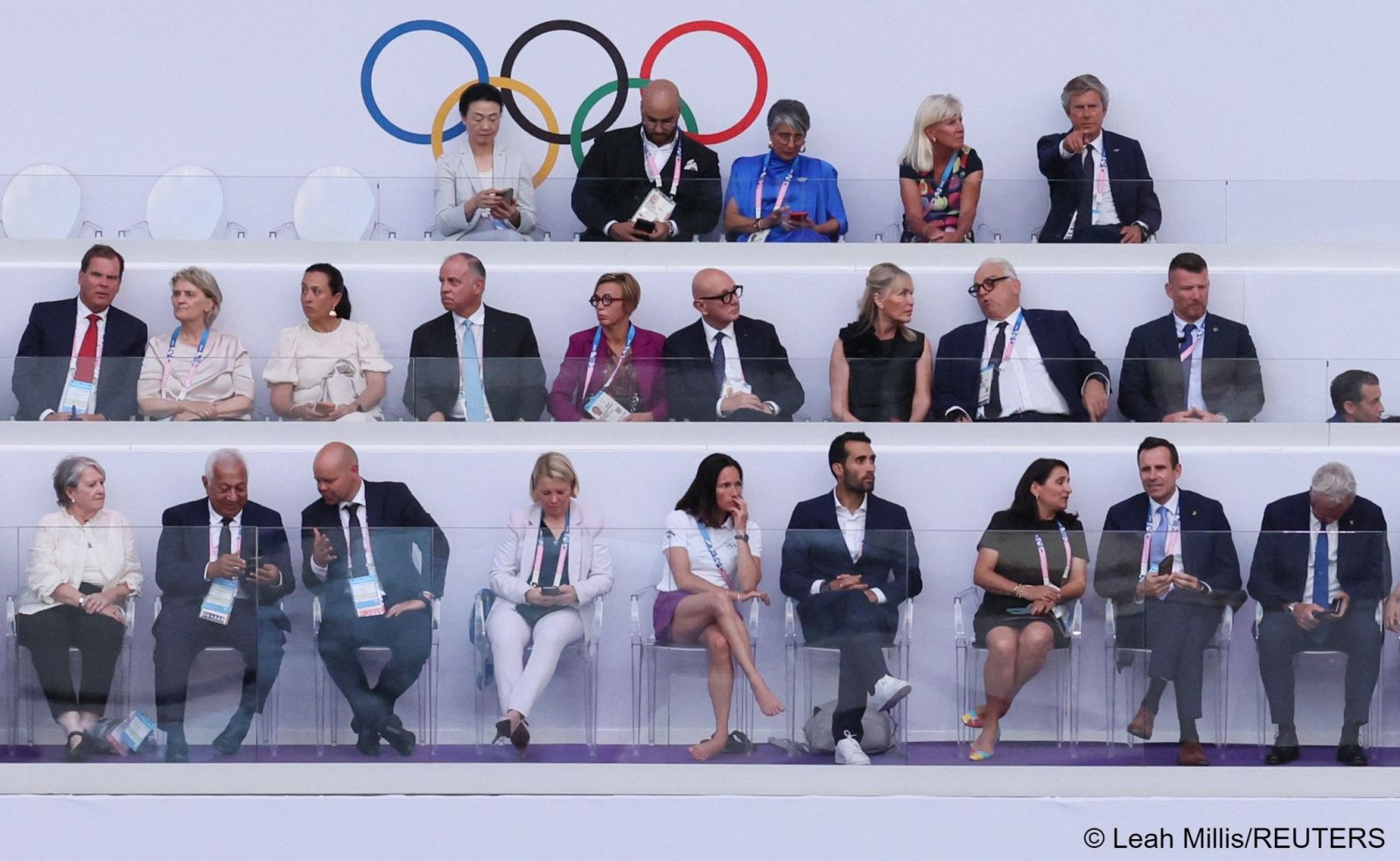Մարզադաշտում են Ֆրանսիայի նախագահ Էմանուել Մակրոնը, Միջազգային օլիմպիական կոմիտեի նախագահ Թոմաս Բախը և ՈՒԵՖԱ-ի ղեկավար Ջաննի Ինֆանտինոն, հայտնում է BBC-ն: