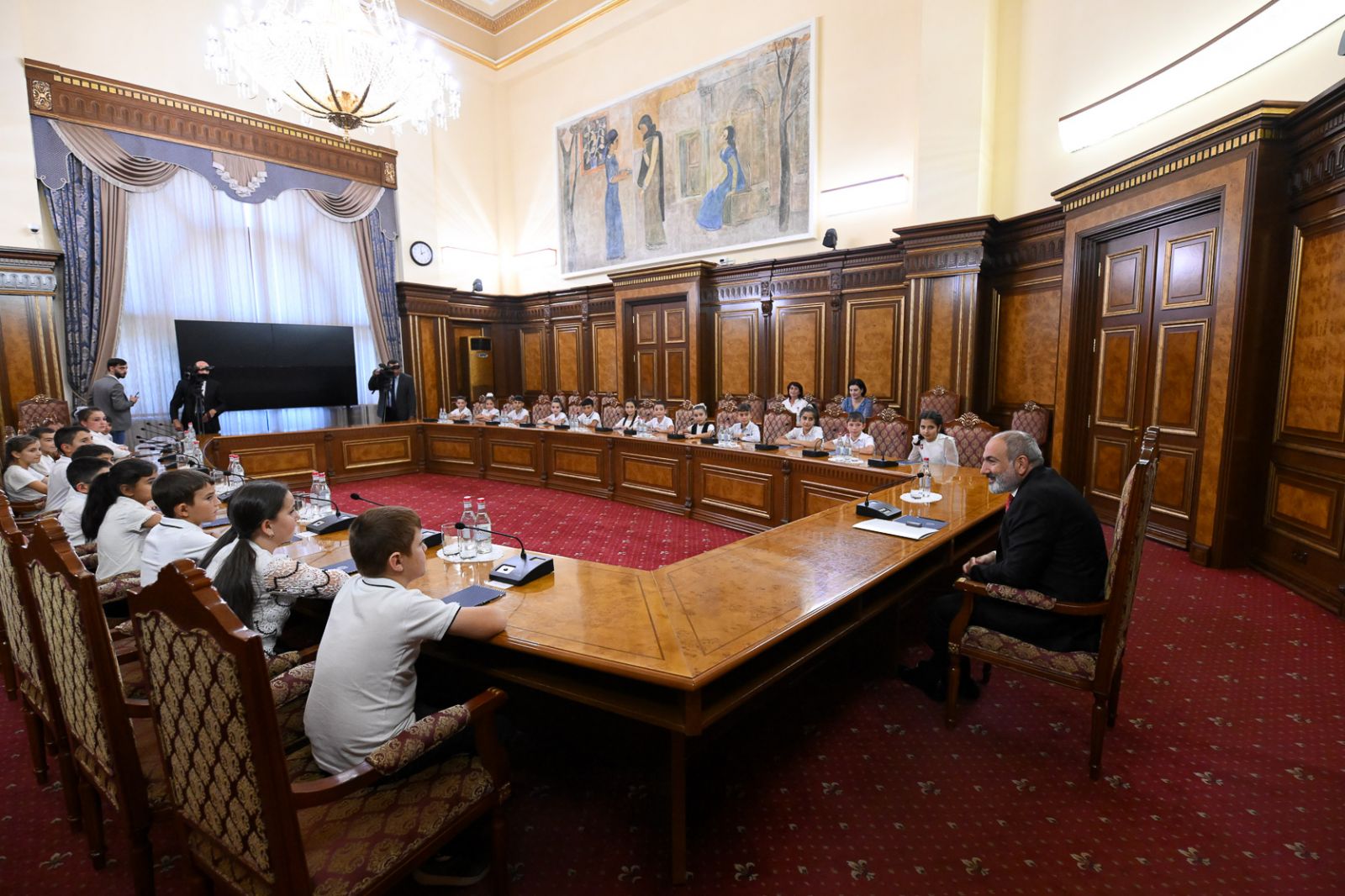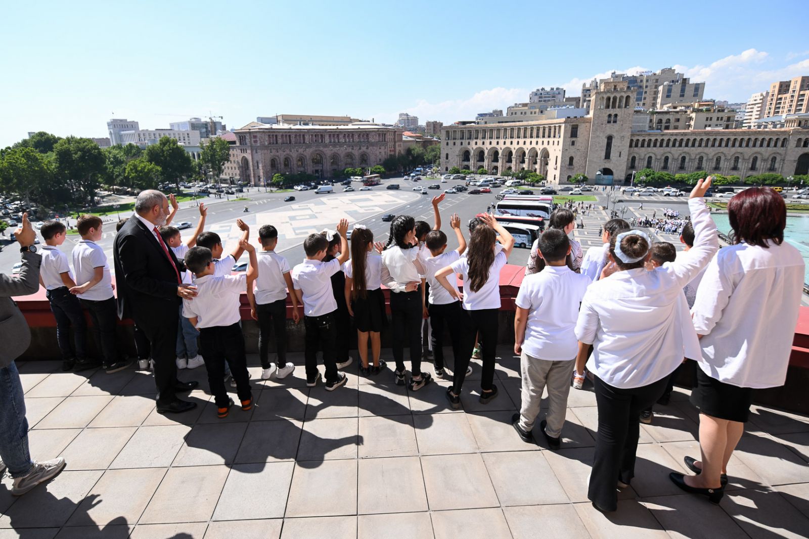 Նիկոլ Փաշինյանը ողջունել է աշակերտներին, զրուցել և պատասխանել է երեխաների հետաքրքրող հարցերին: Այնուհետև՝ Կառավարության ղեկավարն աշակերտներին հրավիրել է իր աշխատասենյակ, ապա նրանց հետ շրջել Կառավարության շենքում՝ նիստերի դահլիճում, հանդիպումների սրահներում: Աշակերտները եղել են նաև գլխավոր ժամացույցի սրահում, որտեղ պահվում են Կառավարության պատմությունը ներկայացնող ցուցանմուշները: