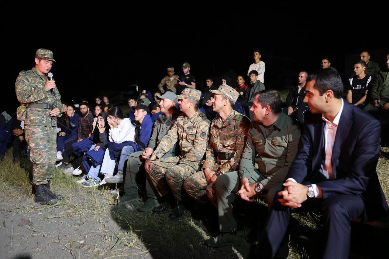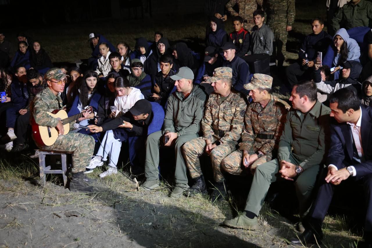 ՀՀ պաշտպանության նախարար Սուրեն Պապիկյանը N բանակային զորամիավորում կատարած աշխատանքային այցի ավարտին խարույկի շուրջ հանդիպում է ունեցել ճամբարականների և ՊՆ Վազգեն Սարգսյանի անվան ռազմական ակադեմիայի նոր ընդունված կուրսանտների հետ: