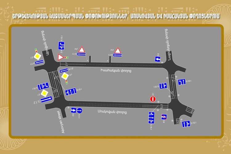 Օգոստոսի 31-ից Իսահակյան և Մոսկովյան փողոցներում՝ Նալբանդյան փողոցից Մաշտոցի պողոտա, Իսահակյան փողոցում՝ Նալբանդյան փողոցից դեպի Մաշտոցի պողոտա ուղղությամբ, իսկ Մոսկովյան փողոցում՝ Մաշտոցի պողոտայից դեպի Նալբանդյան փողոց ընկած ճանապարհահատվածներում երթևեկությունը կկազմակերպվի միակողմանի:
