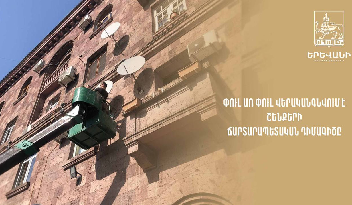 Մայրաքաղաքի ճարտարապետական տեսքը վերականգնելու նպատակով շենքերից հեռացվում են ինքնակամ տեղադրված ալեհավաքներն ու տարատեսակ ծածկերը, վերացվում են կամայական կառույցները: Այդ մասին տեղեկացնում են քաղաքապետարանից: