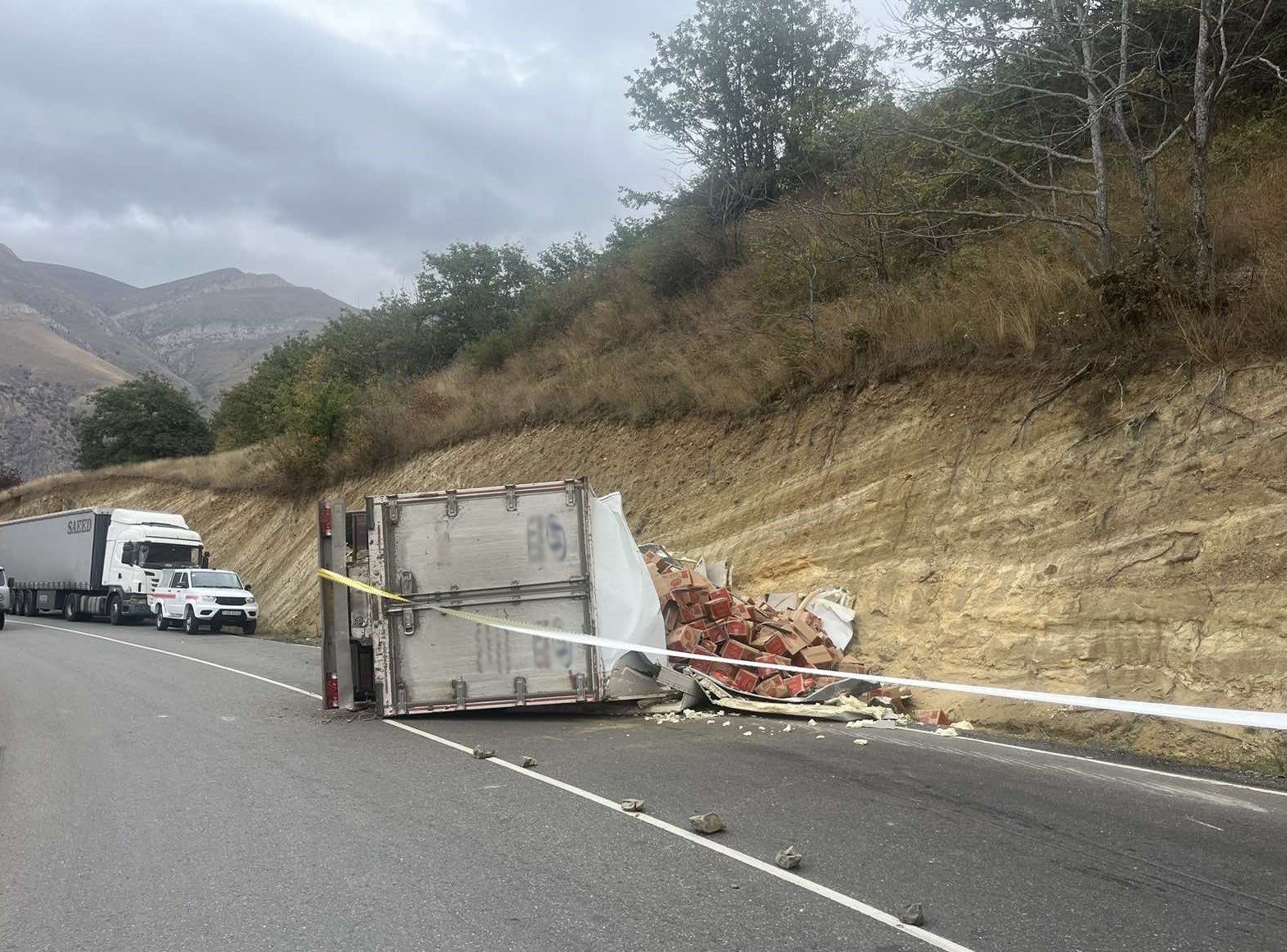 Պարզվել է, որ Սիսիան-Տաթև ավտոճանապարհի 28-րդ կմ-ին Iveco մակնիշի բեռնատարը (վարորդներ՝ Մ․ Մ․ Ն․, ծնված 1982 թ. և Հ․ Հ․ Բ․, ծնված 1984 թ.) կողաշրջվել է․ վարորդները արգելափակվել են ուղեխցիկում: