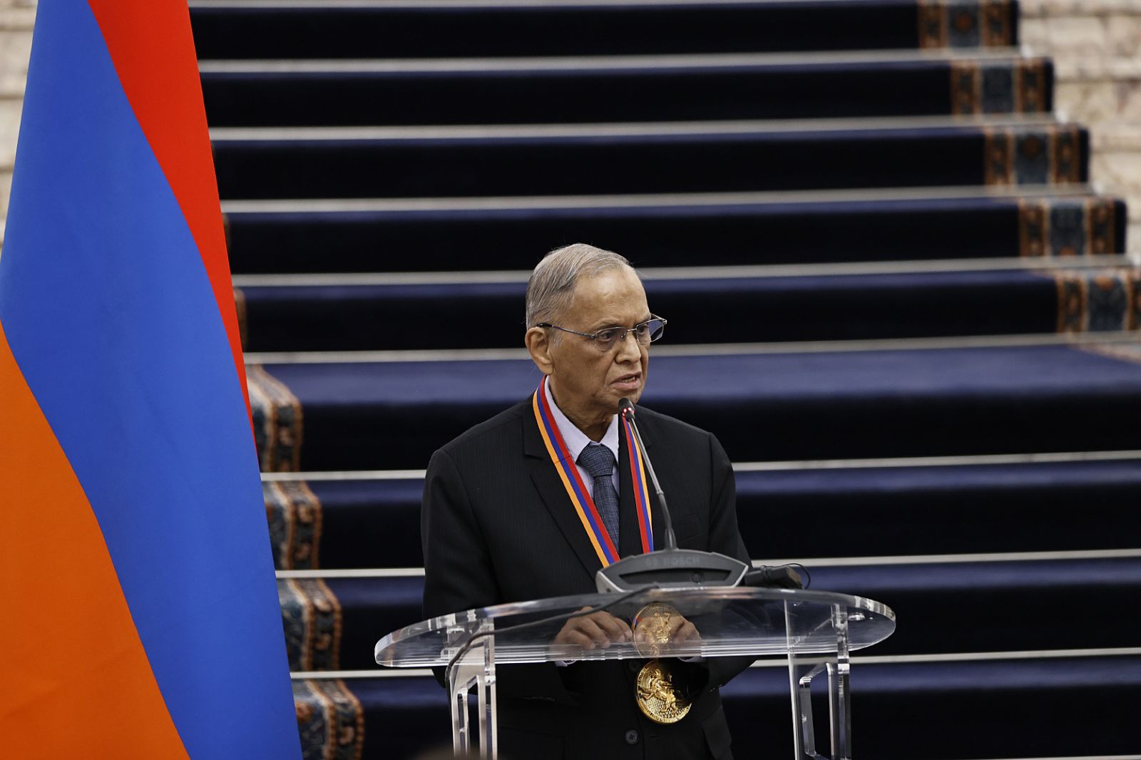 Վարչապետ Նիկոլ Փաշինյանը տեղեկատվական տեխնոլոգիաների ոլորտում համաշխարհային ներդրման համար ՀՀ պետական մրցանակը հանձնել է «Infosys Limited» ընկերության հիմնադիր Նարայանա Մուրթիին: