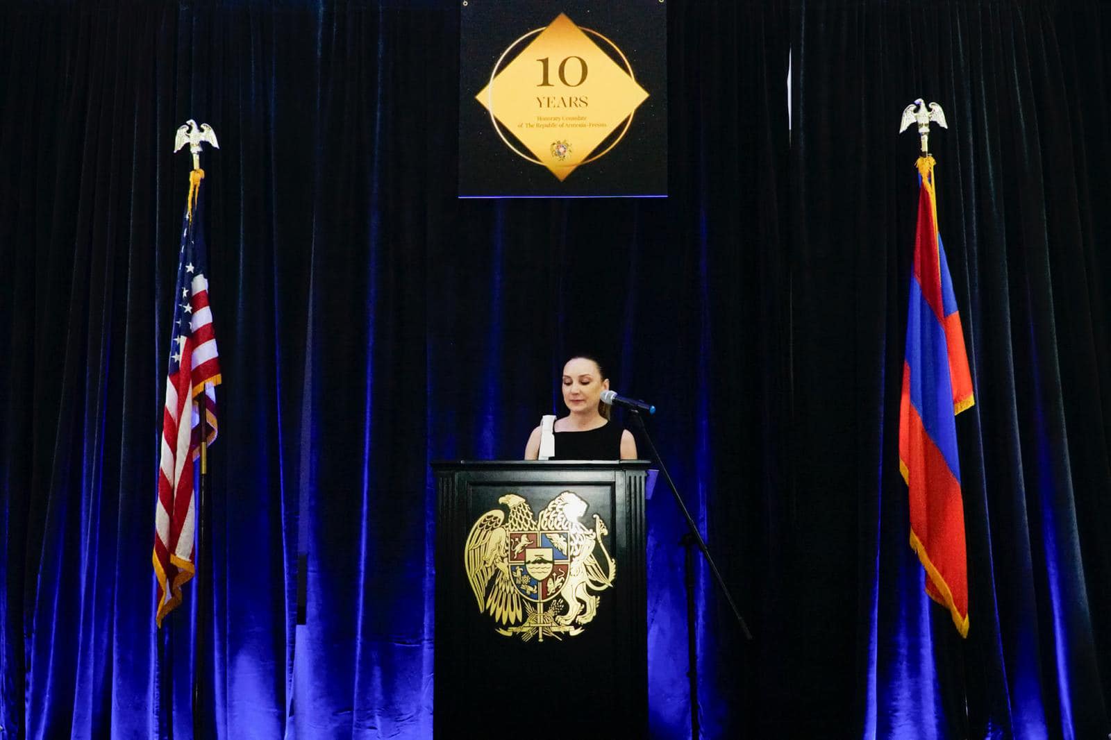 Միջոցառմանը բացման ելույթով հանդես է եկել դեսպան Մակունցը՝ բարձր գնահատելով Պատվավոր հյուպատոսության և հատկապես պատվավոր հյուպատոս Պերճ Աբգարյանի կողմից 10 տարիների ընթացքում իրականացված աշխատանքները և մարդասիրական ծրագրերը ՀՀ-ում՝ ընդգծելով Պատվավոր հյուպատոսության կարևոր դերակատարումը հայ համայնքի և Հայաստանի Հանրապետության կապի ամրապնդման, ԱՄՆ-ում հայկական մշակութային ժառանգության պահպանության և ՀՀ-ԱՄՆ բարեկամական հարաբերությունների ջերմացման հարցում։