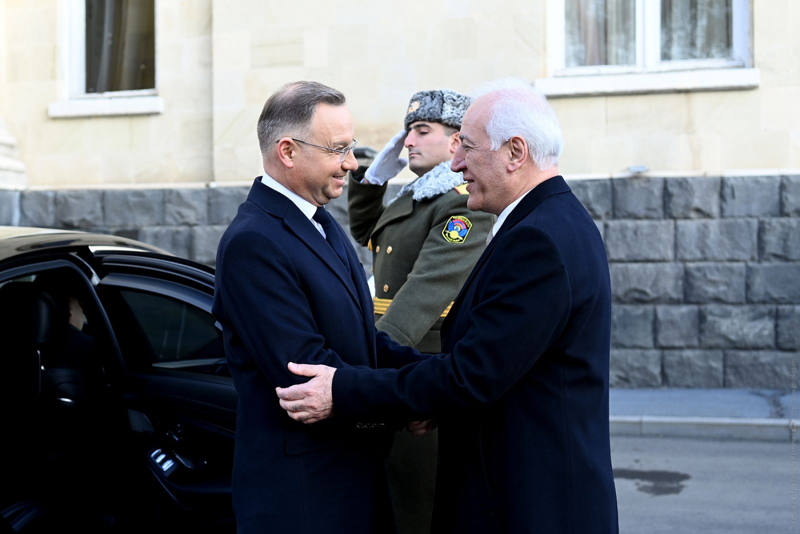 Հանրապետության նախագահի նստավայրում այսօր տեղի է ունեցել պաշտոնական այցով Հայաստան ժամանած Լեհաստանի նախագահ Անջեյ Դուդայի դիմավորման պաշտոնական արարողությունը: