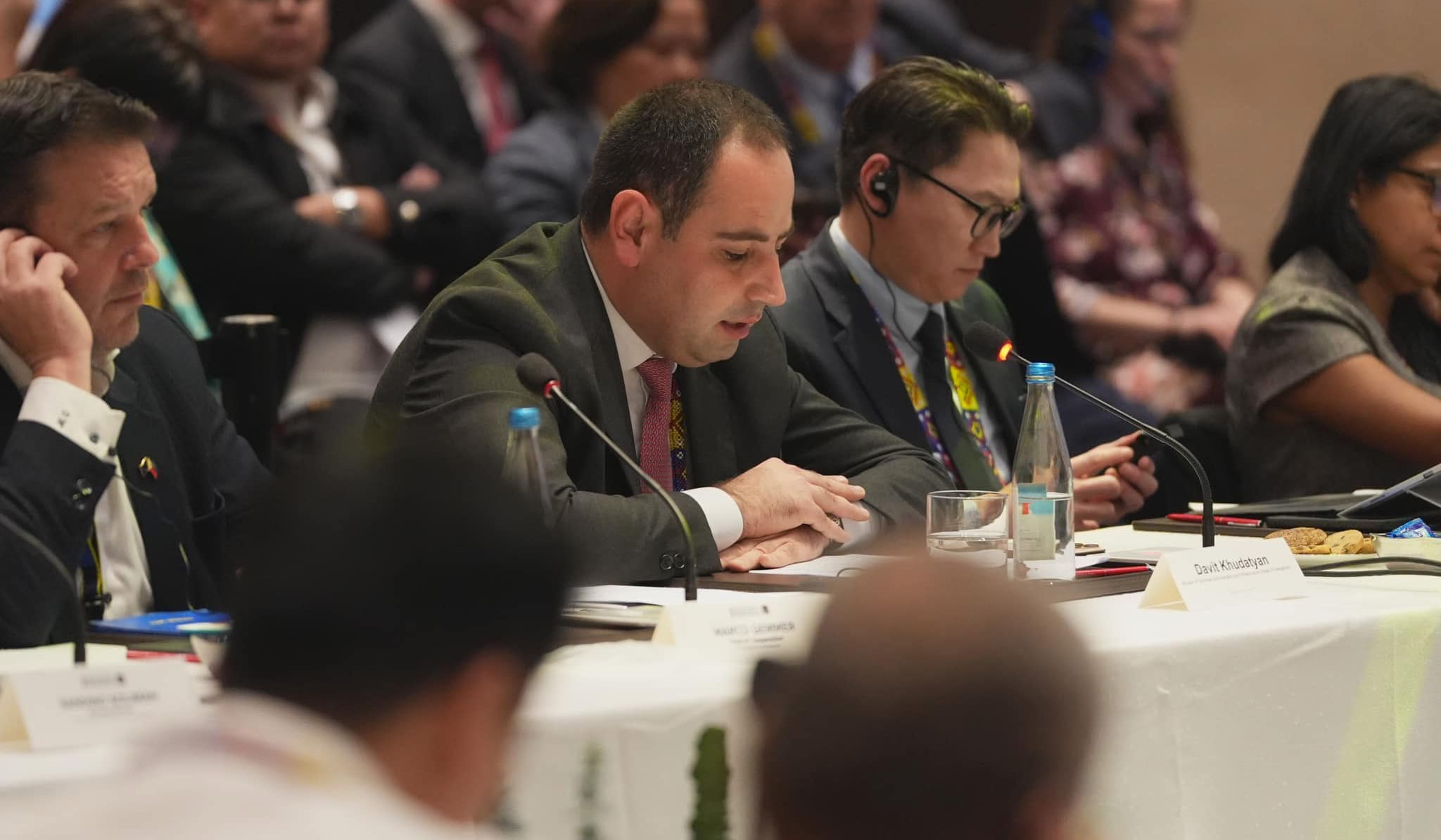 Իր ելույթում նախարար Խուդաթյանը ներկայացրել է «Բաց կառավարման գործընկերության» նախաձեռնության շրջանակներում Հայաստանի Հանրապետության ստանձնած հանձնառությունների կատարման ընթացքը, համայնքներում իրականացվող մասնակցային բյուջետավորման ծրագիրը, Հայաստանի Հանրապետությունում հակակոռուպցիոն պայքարին ուղղված միջոցառումները։