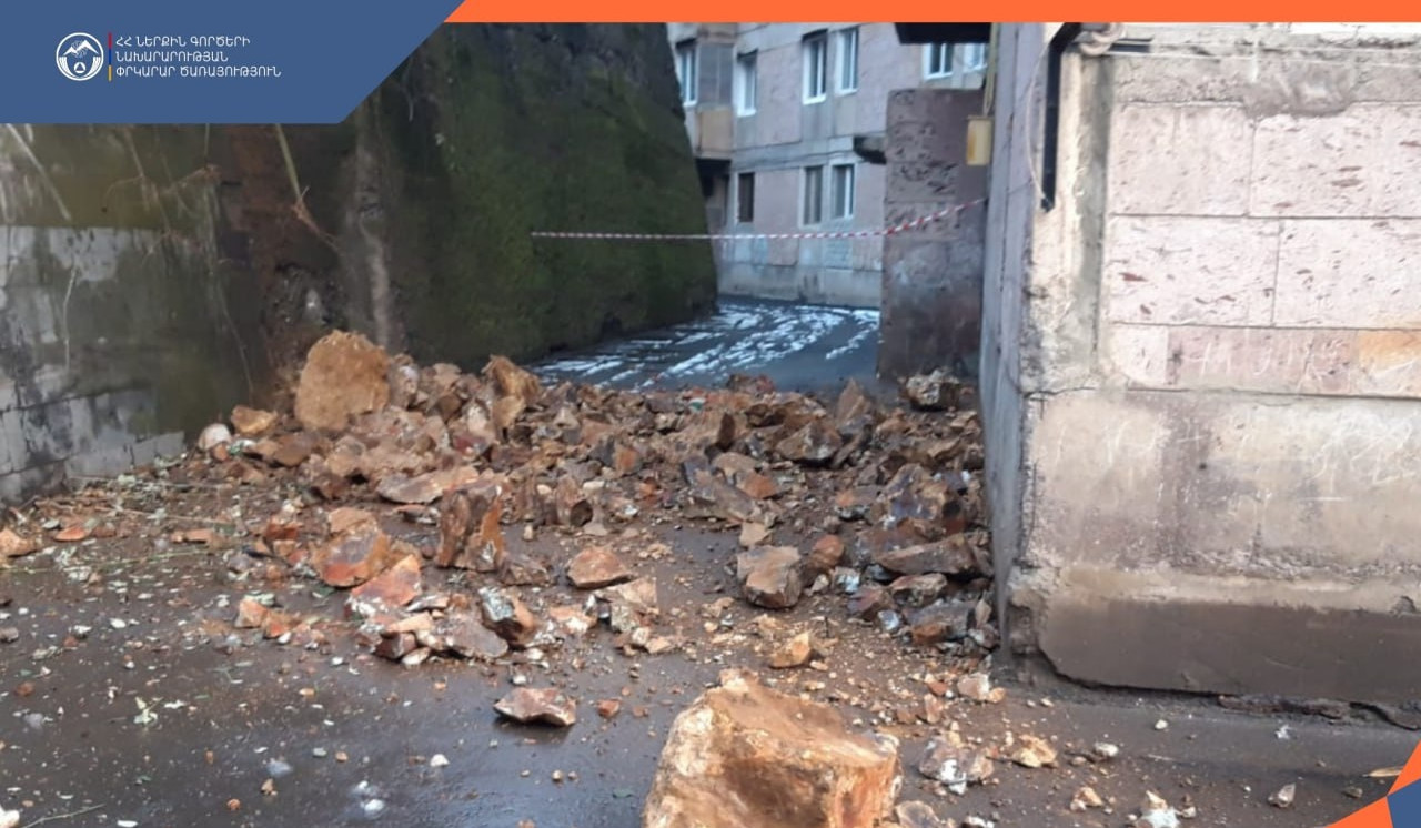 Պարզվել է, որ շենքին մոտակա սարալանջից տեղի է ունեցել քարաթափում՝ մոտ 3 խմ, ինչի հետևանքով վնասվել է VAZ մակնիշի ավտոմեքենայի դուռը և դիմացի հատվածը: