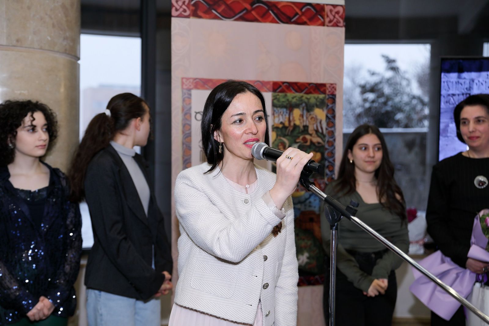 Ժաննա Անդրեասյանը շրջել է ցուցադրության սրահում, հանգամանորեն դիտել «Ծաղկելու արվեստ» մանրանկարչական ստուդիայի շրջանավարտների ստեղծագործությունները, զրուցել հեղինակների հետ: