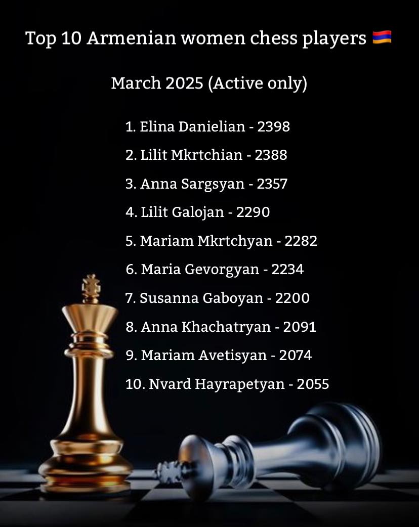 Հայաստանի շախմատի ֆեդերացիան ներկայացրել է 2025 թ․ մարտի 1-ի դրությամբ Հայաստանի 10 լավագույն շախմատիստները և շախմատիստուհիների ցանկը։