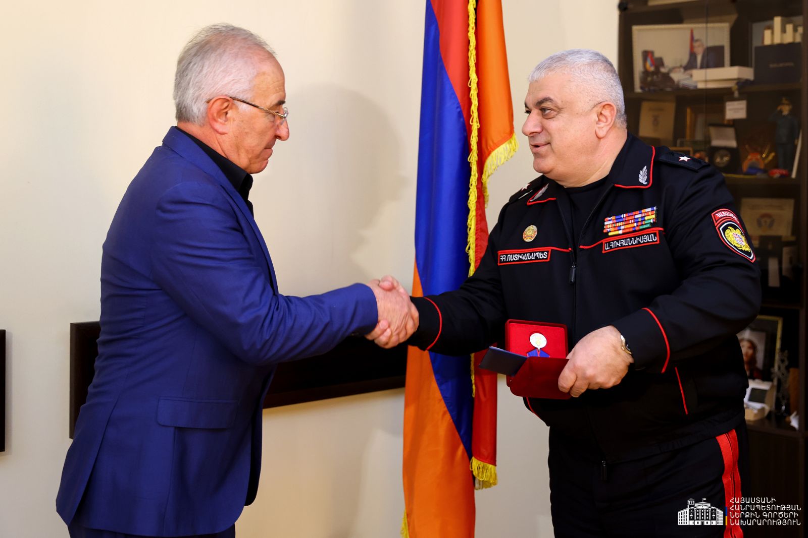 Շնորհավորական և շնորհակալական խոսքեր հղելով ներքին գործերի նախարար Արփինե Սարգսյանի անունից՝ նախարարի տեղակալ Արամ Հովհաննիսյանը հանցագործությունների բացահայտմանն ուղղված աշխատանքներին ակտիվ մասնակցության, հասարակություն-ոստիկանություն կապի ամրապնդմանն օժանդակելու, ինչպես նաև Ոստիկանության օրվա՝ ապրիլի 16-ի կապակցությամբ ոստիկանության մի խումբ վետերանների պարգևատրել է «Իրավակարգի ամրապնդման համար», «Օրենքի պատվար» մեդալներով և «Ոստիկանությունում գերազանց ծառայության համար» կրծքանշանով։