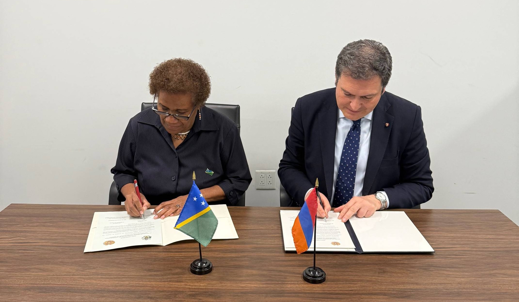 Մայիսի 14-ին Նյու Յորքում ՀՀ Մշտական ներկայացուցիչ Պարույր Հովհաննիսյանը և Սողոմոնի Կղզիների մշտական ներկայացուցիչ Ջեյն Մուգաֆալու Քաբուի Վեատարան ստորագրել են Համատեղ կոմյունիկե Հայաստանի Հանրապետության և Սողոմոնի Կղզիների միջև դիվանագիտական հարաբերություններ հաստատելու մասին։ Այս մասին հայտնում են ՀՀ ԱԳ նախարարությունից:
