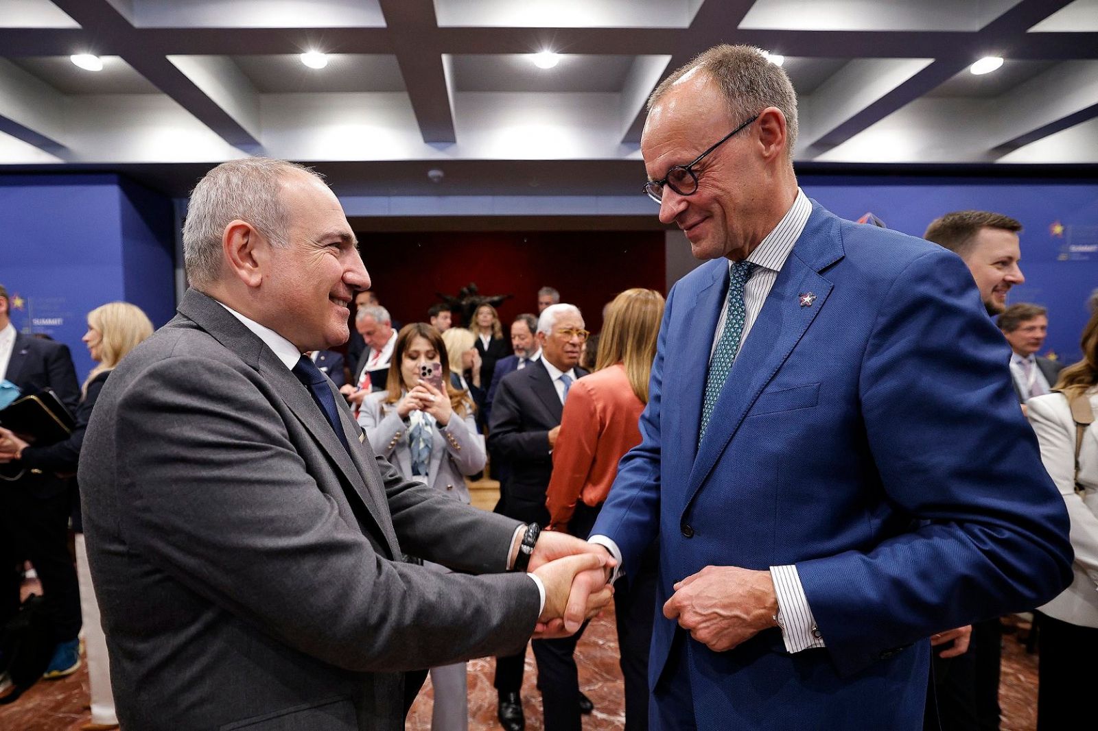 Նիկոլ Փաշինյանը կարճատև զրույցներ է ունեցել նաև Ֆրանսիայի նախագահ Էմանուել Մակրոնի, Մեծ Բրիտանիայի վարչապետ Քիր Սթարմերի, Թուրքիայի նախագահ Ռեջեփ Թայիթ Էրդողանի, Հունգարիայի վարչապետ Վիկտոր Օրբանի, Շվեյցարիայի նախագահ Կարին Կելլեր-Սութերի, Մոլդովայի նախագահ Մայա Սանդուի, Մոնակոյի արքայազն Ալբեր Երկրորդի, Եվրոպայի խորհրդի գլխավոր քարտուղար Ալեն Բերսեի, Անդորրայի վարչապետ Չավիեր Էսպոտ Սամորայի և այլ գործընկերների հետ: