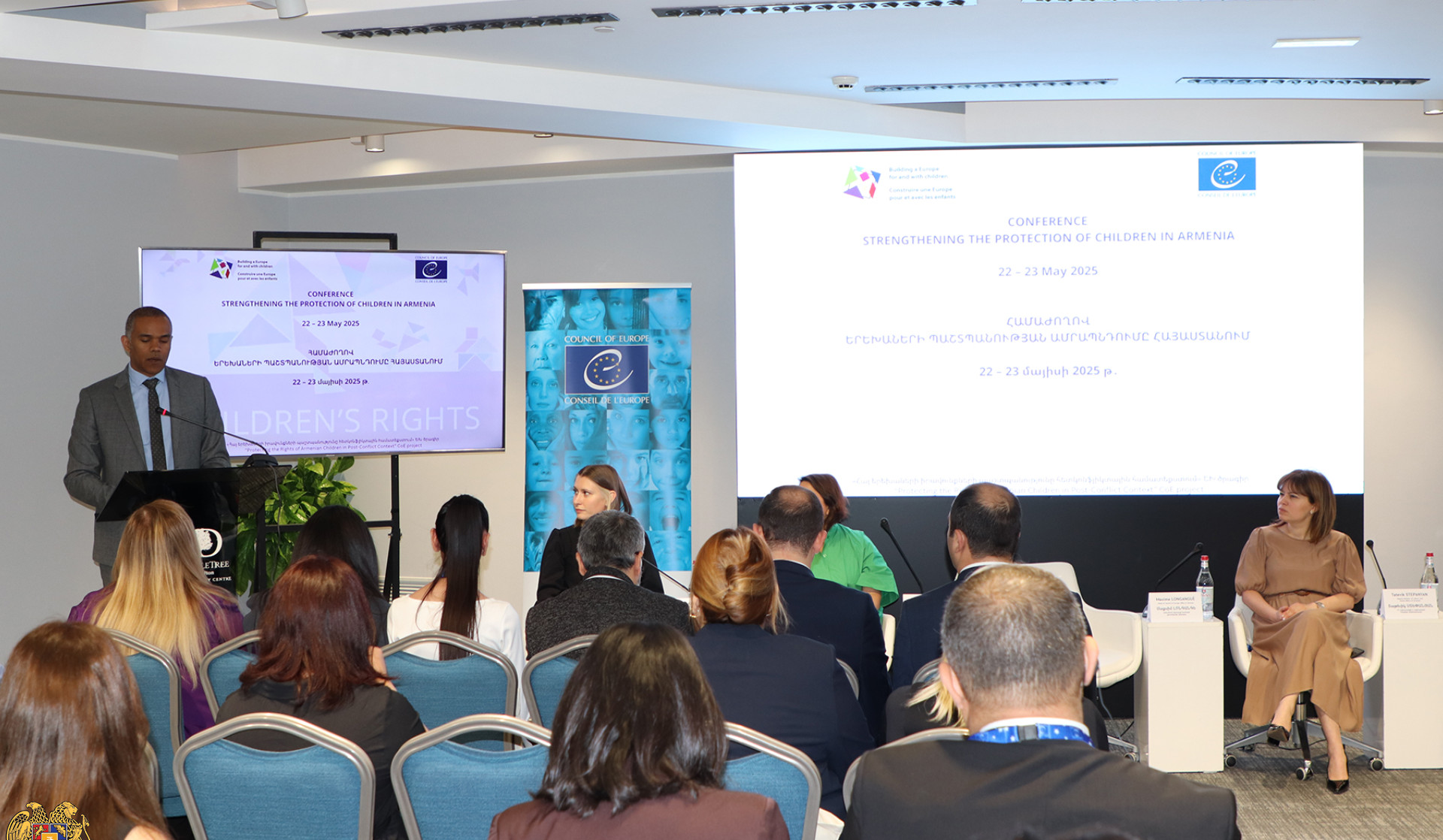 Երեխաների իրավունքների պաշտպանության ոլորտի շահագրգիռ գերատեսչությունների և Եվրոպայի խորհրդի Երևանի գրասենյակի ներկայացուցիչների մասնակցությամբ տեղի է ունեցել «Երեխաների պաշտպանության ամրապնդումը Հայաստանում» խորագրով երկօրյա համաժողովը՝ քննարկելու արտակարգ և հետճգնաժամային իրավիճակներում երեխաների պաշտպանության մեխանիզմները: