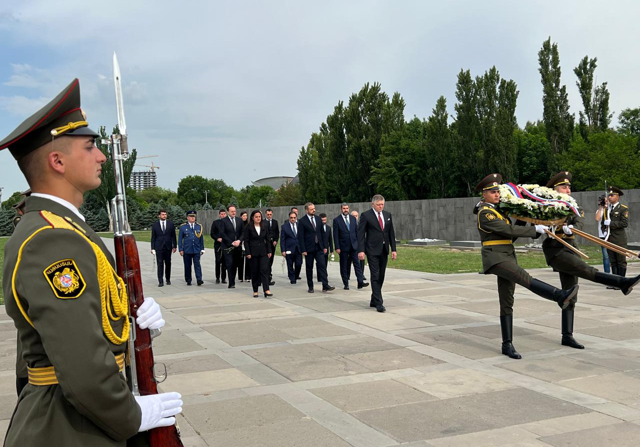 Սլովակիայի վարչապետը ծաղկեպսակ է դրել Հայոց ցեղասպանության զոհերի հիշատակը հավերժացնող հուշակոթողին, այնուհետև հյուրերը ծաղիկներ են դրել անմար կրակի մոտ և մեկ րոպե լռությամբ հարգել Հայոց ցեղասպանության անմեղ զոհերի հիշատակը: