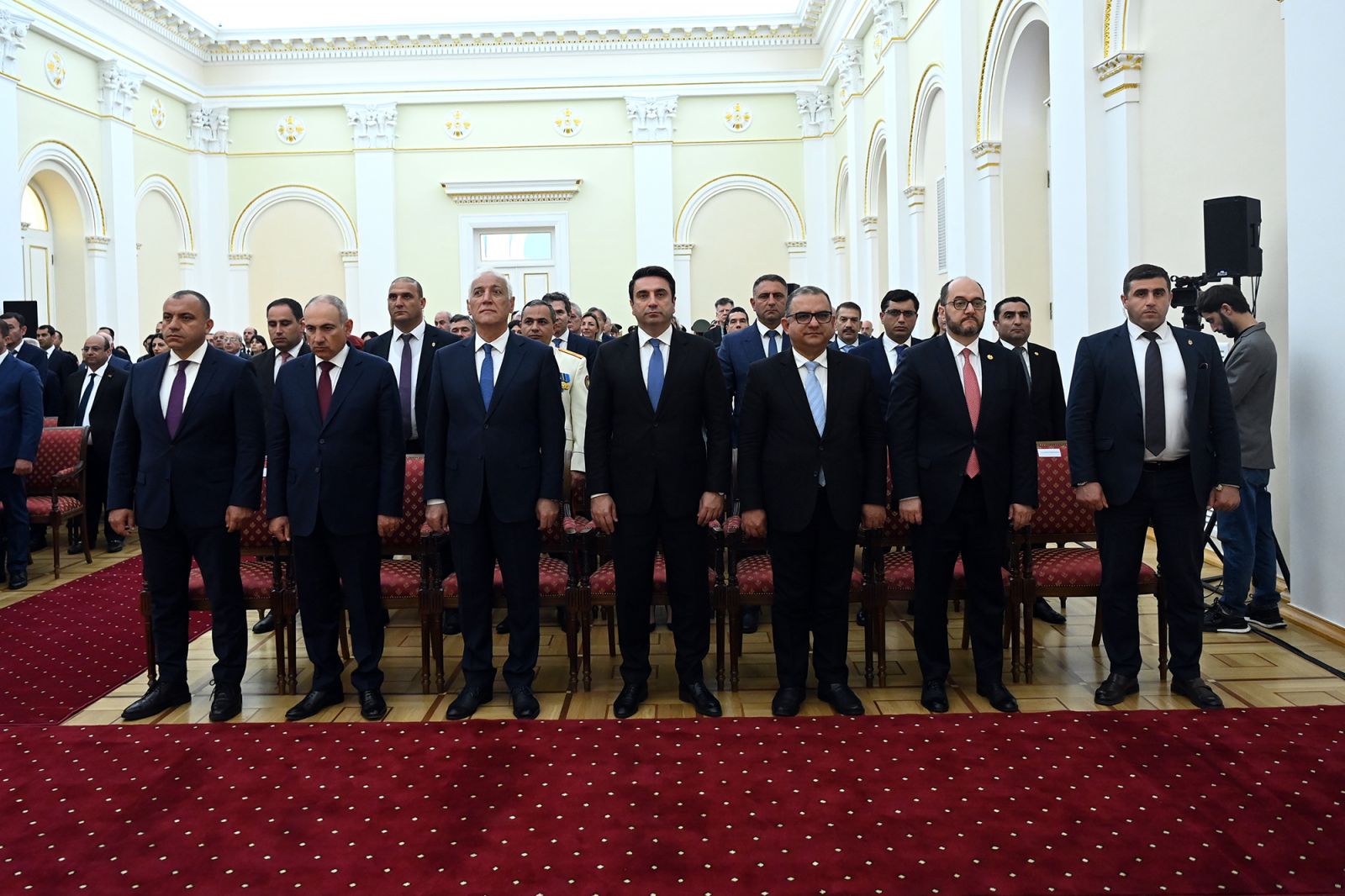 Հանդիսավոր արարողությանը, որը կայացել է Հանրապետության նախագահի նստավայրում, մասնակցել են նաև ՀՀ վարչապետ Նիկոլ Փաշինյանը, Ազգային ժողովի նախագահ Ալեն Սիմոնյանը և բարձրաստիճան այլ պաշտոնյաներ։ Նախագահ Խաչատուրյանը շնորհավորել է բոլորին Հանրապետության տոնի առթիվ: