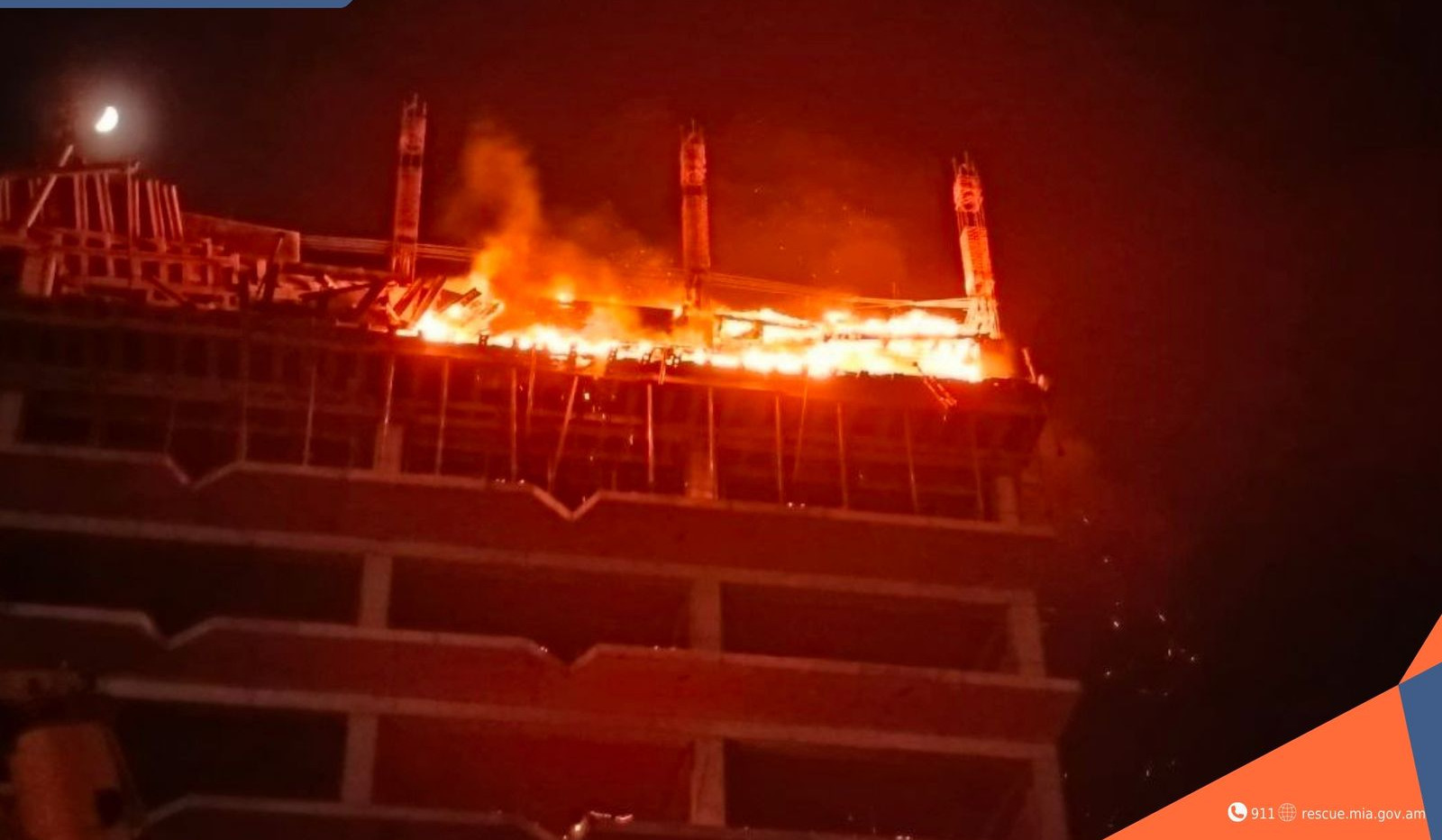 «Հունիսի 2-ին՝ ժամը 21։01-ին, Ճգնաժամային կառավարման ազգային կենտրոն ահազանգ է ստացվել, որ Երևան քաղաքի Առնո Բաբաջանյան փողոցի կիսակառույց չբնակեցված շենքերից մեկի 10-րդ հարկում հրդեհ է բռնկվել։