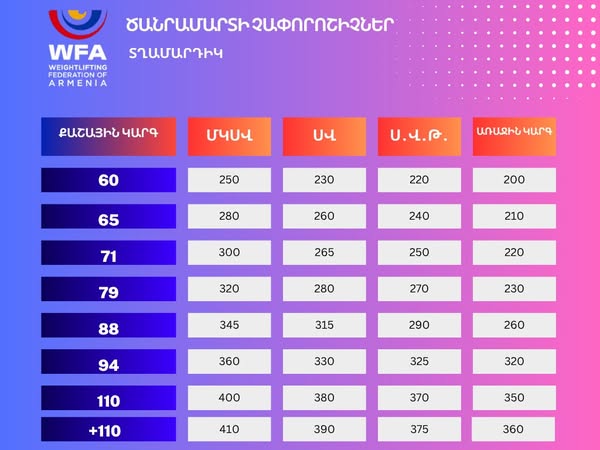 Հայաստանի ծանրամարտի ֆեդերացիան նաև ներկայացրել է նոր քաշային կարգերի չափորոշիչները: