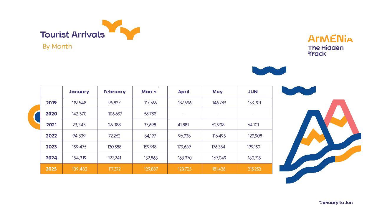 Զբոսաշրջության կոմիտեն ներկայացնում է 2025 թվականի հունիսին դեպի Հայաստան այցելությունների թիվը։